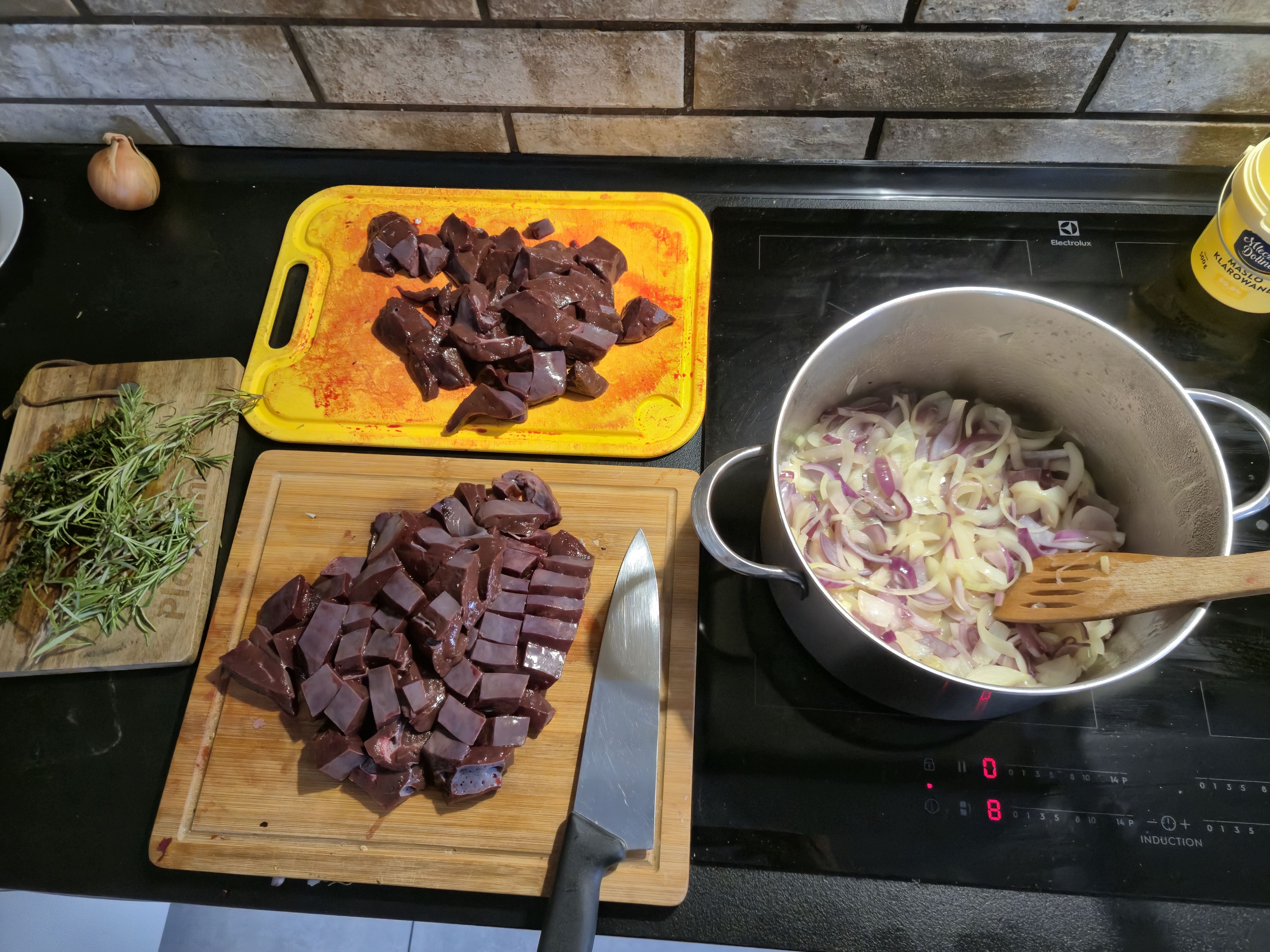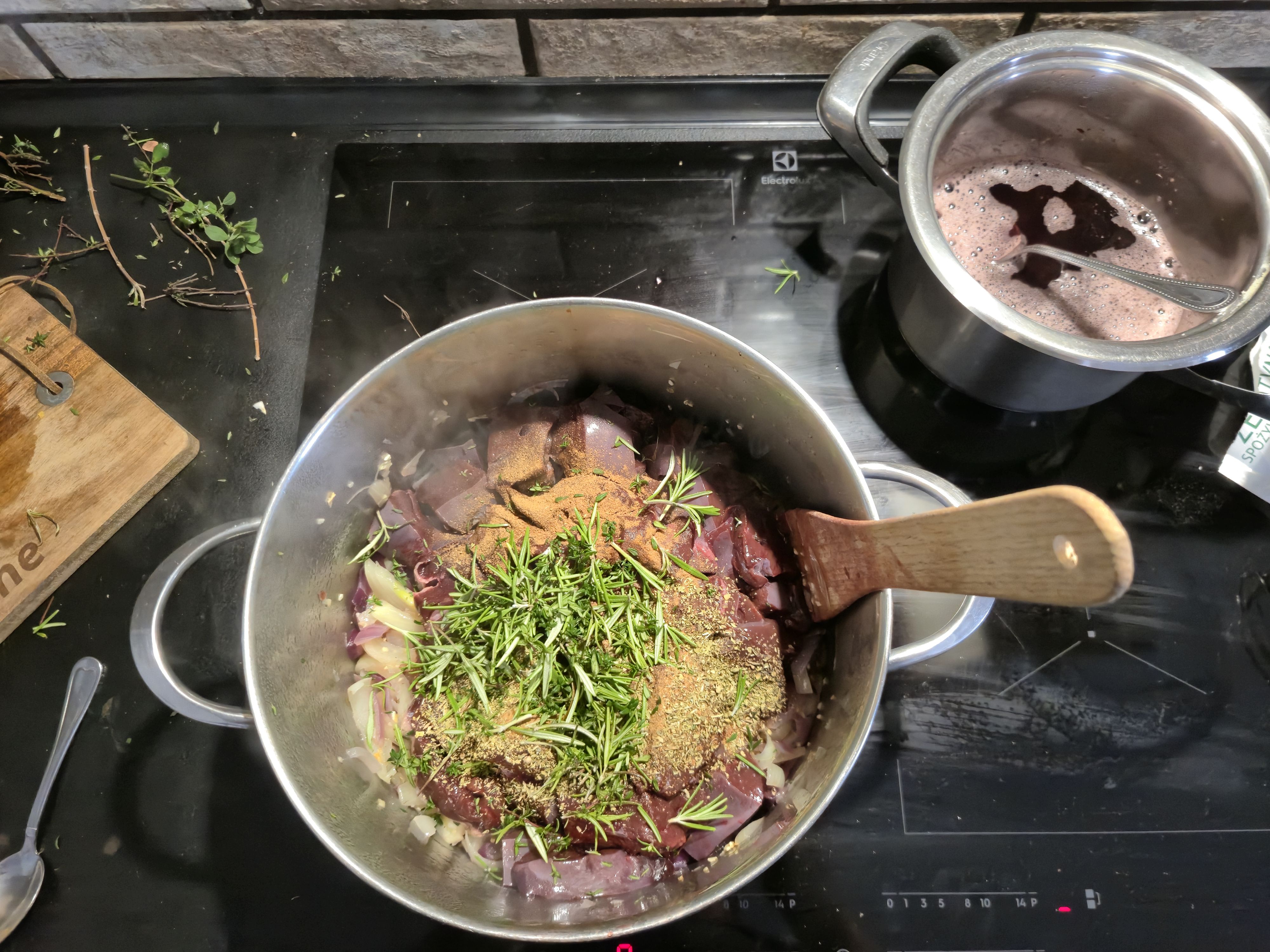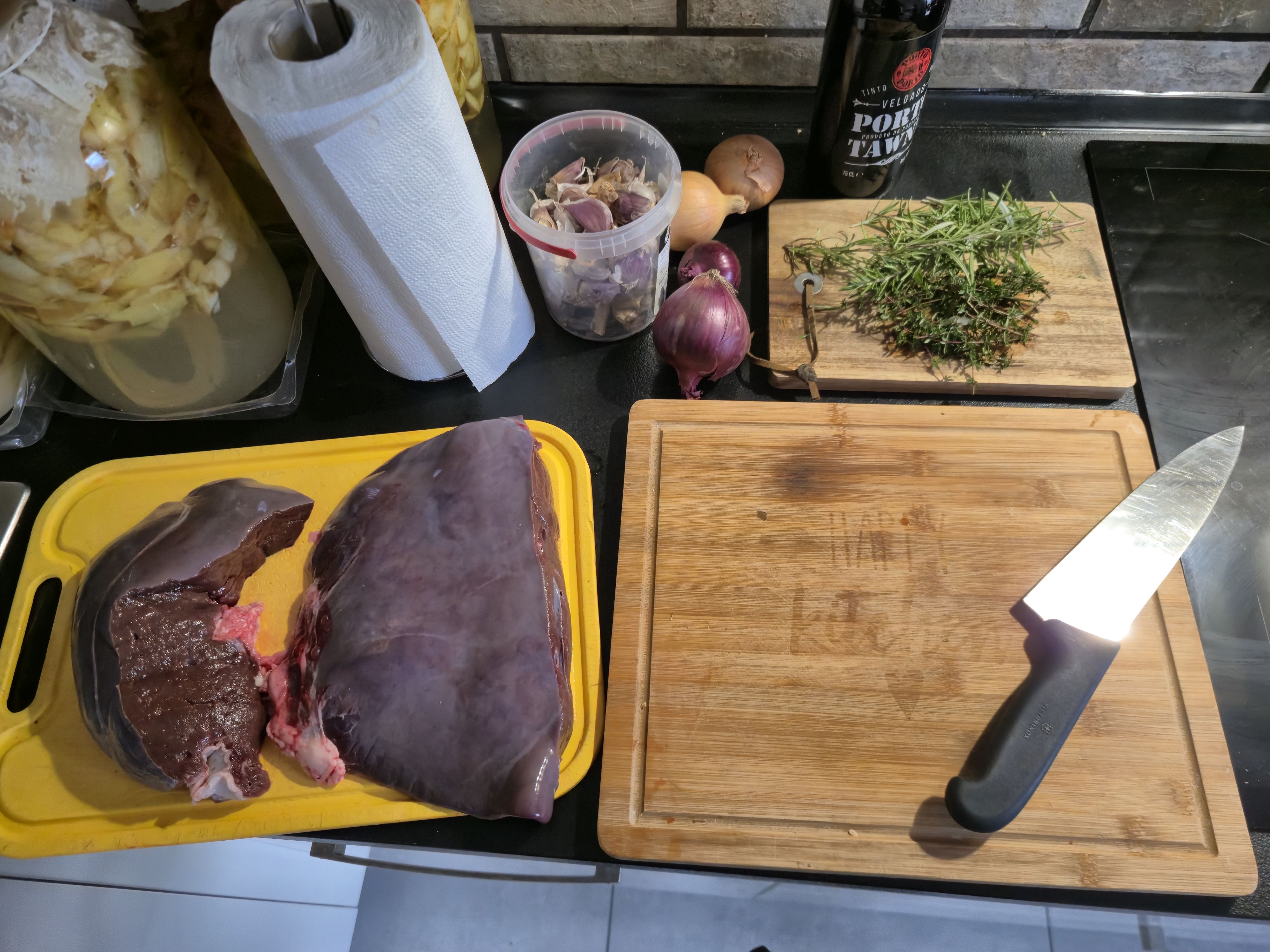 BAMONIONS DONETHROW IN THE LIVER AND HERBSTHIS IS IMPORTANT!!!!DO NOT FORGET TO THROW IN THE LIVER!!!!AND START MAKING PORT JELLYJUST BOIL SOME PORT AND THROW IN THE GELATINE YES, IT'S THAT SIMPLE