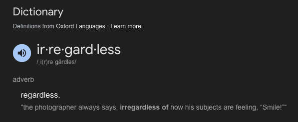 >>21755921>irregardlessYou are fucking retarded.