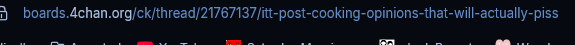 >>21767137>Post cooking opinions that will actually piss people offWhat's the point of that? Why would I want to piss anyone off?
