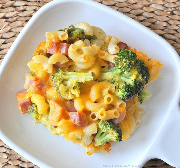 When I enhance a mac n cheese casserole, I like to add minced fresh onion to my butter when making my bechamel, then I add chunks of butternut squash to the boiling water, near the last minute of cooking. There is something nice from the softer squash. I might fold in some ham when assembling, but it's always topped with buttered fresh breadcrumbs before going into the oven. That browned topping and overly done pasta corners and sides is the texture I want.I don't have leftover ham, usually. It's gobbled up. But, I do buy the BOGO Smithfield "ham steaks" for dicing into recipes.