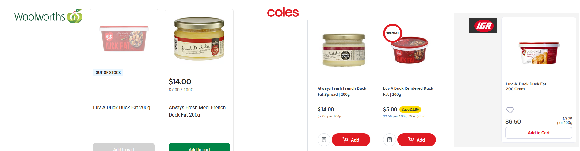 >>21781905>buy duck >cook it >get fat ez. Had roast duck last week and have got a load of fat which gets used for future roasts.