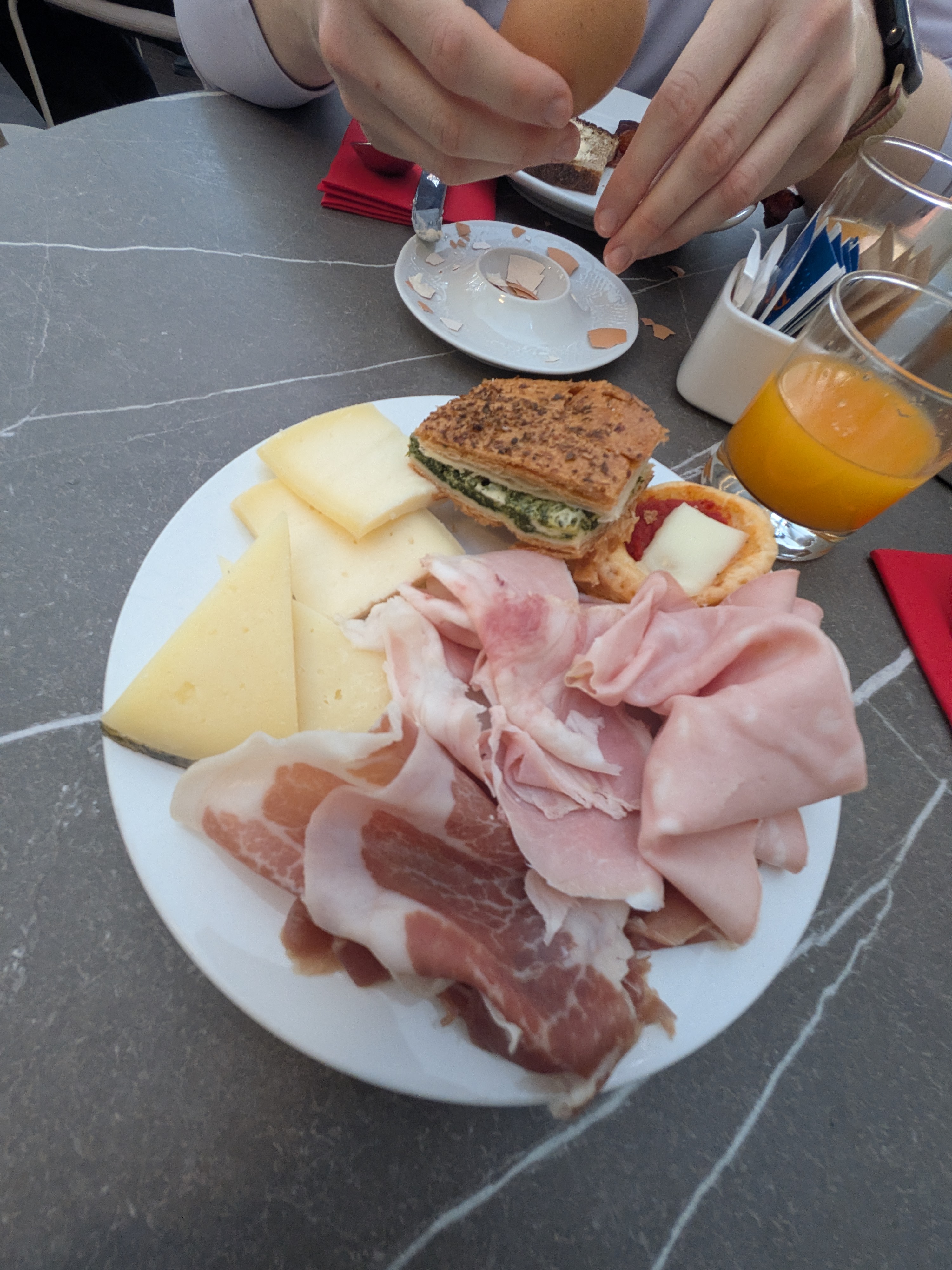 Me Din Dins (in Italy)Focaccia prosciutto Toscano, fig and truffle confettura, pecorinoAnd one with sun-dried tomatoes instead God they were so good lads
