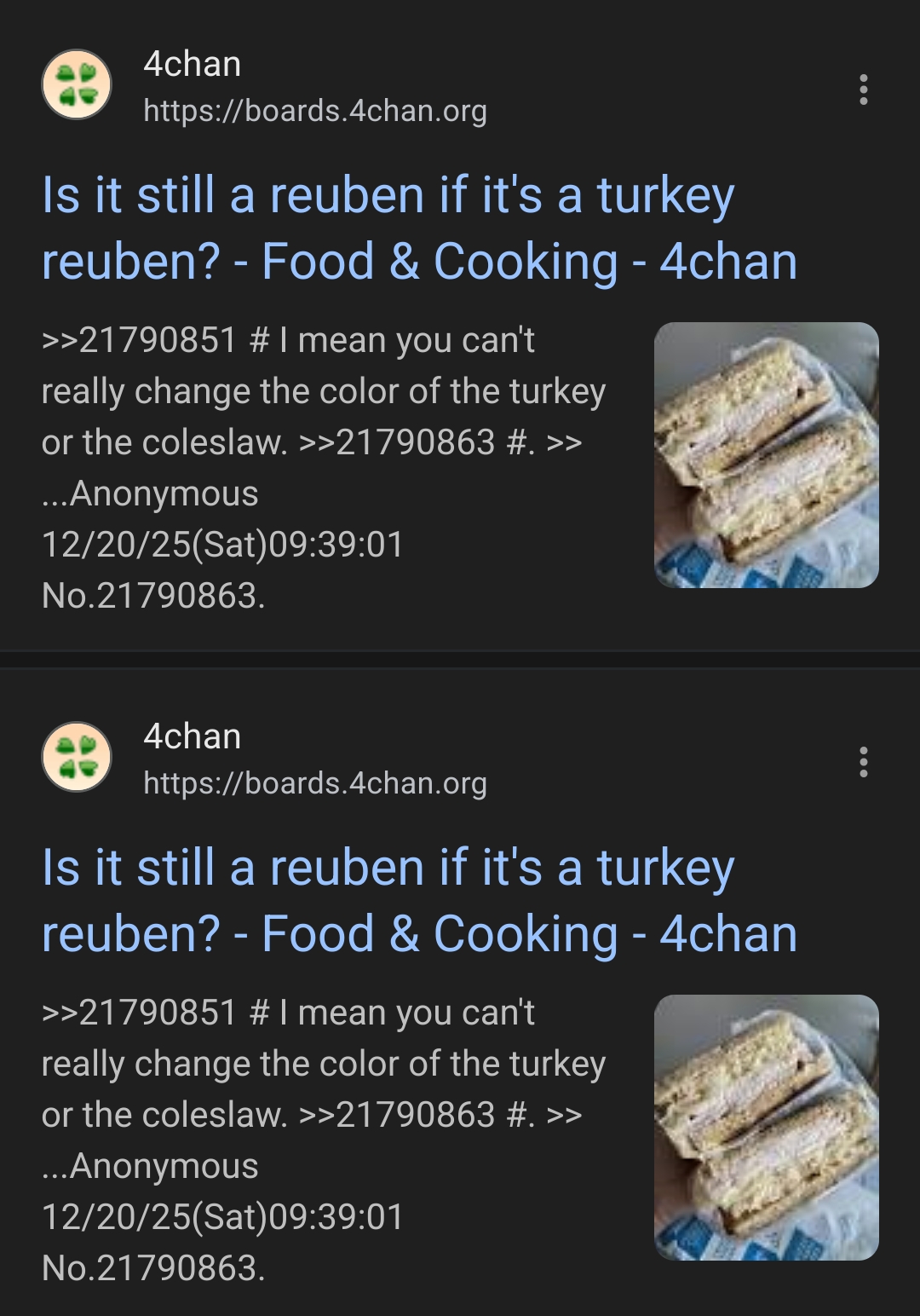 >>21790845It's a Turkey Ruben then.Still less dumb than 12 magdonals threads.