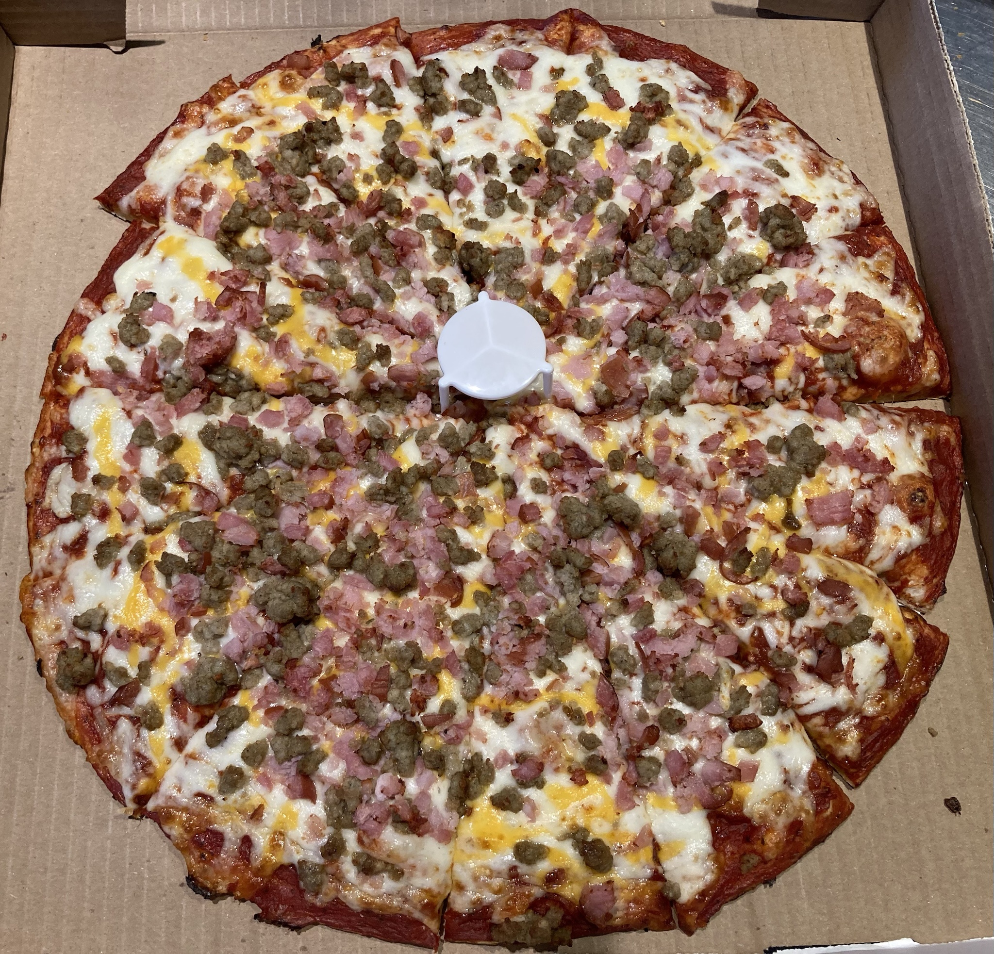 More flavors doesnt mean better anon. >extra sauce that is acidic and not sweet>pepperoni ontop or under >mushroom on top of cheese >purple onions ontop of cheese so they crisp upSo fucking good. Also, bacon is good on it but as is its a perfect za