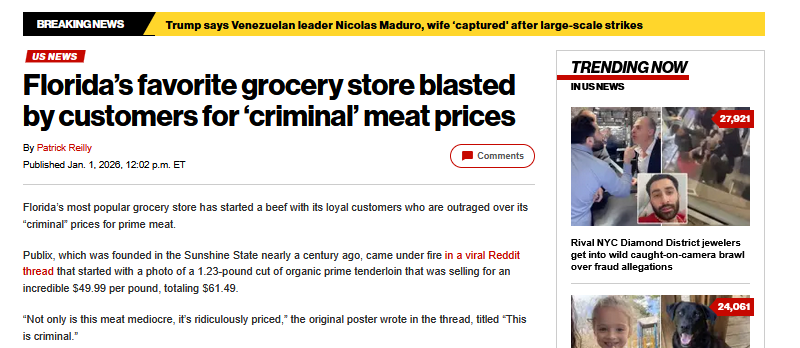 Are people in Florida really paying this much for beef? https://nypost.com/2026/01/01/us-news/floridas-favorite-grocery-store-blasted-by-customers-for-criminal-meat-prices/