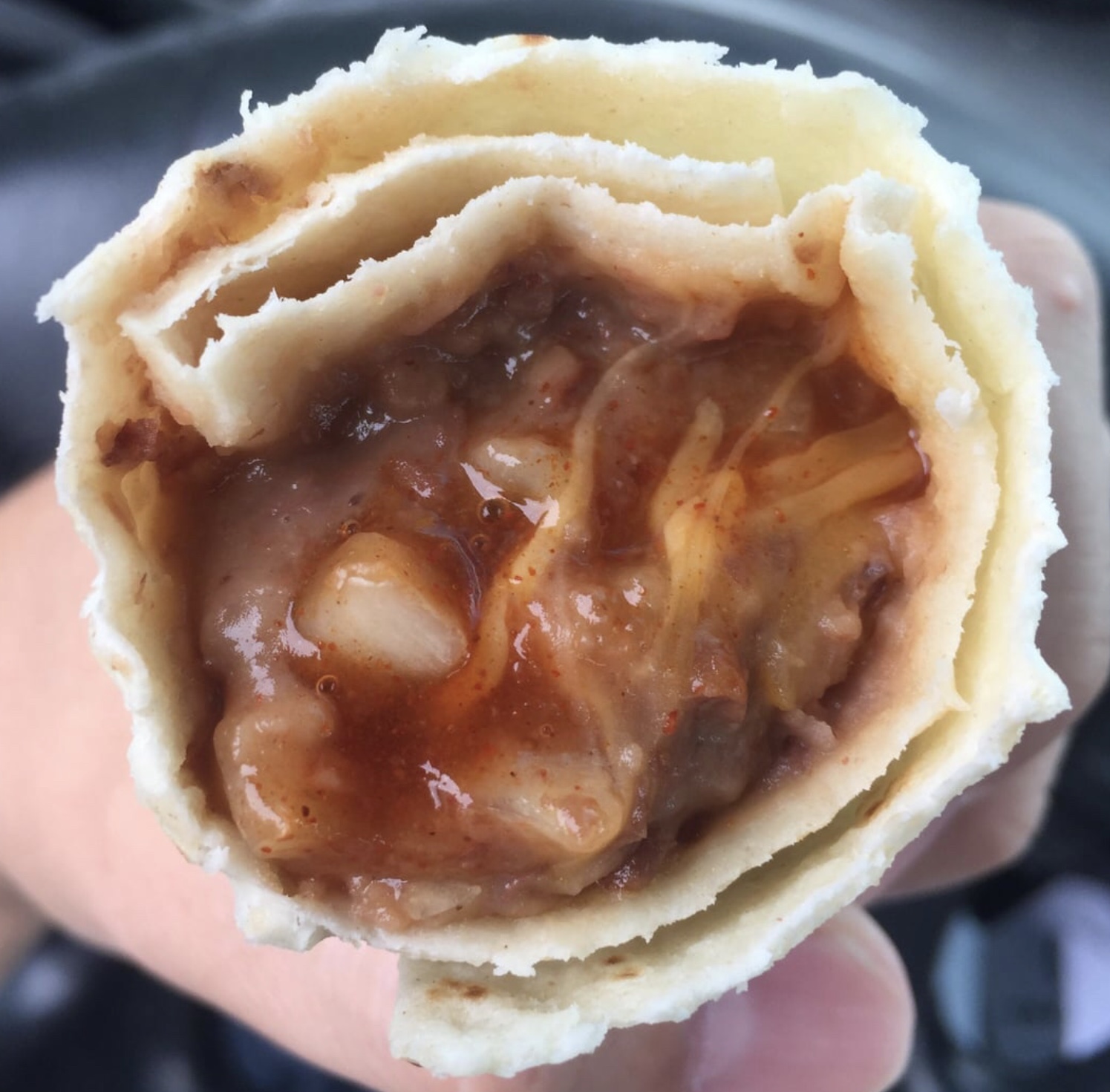 >>21813652>beef, shredded cheese, onions, and red sauceThat’s exactly the Bean Burrito, just sub beef for beans.