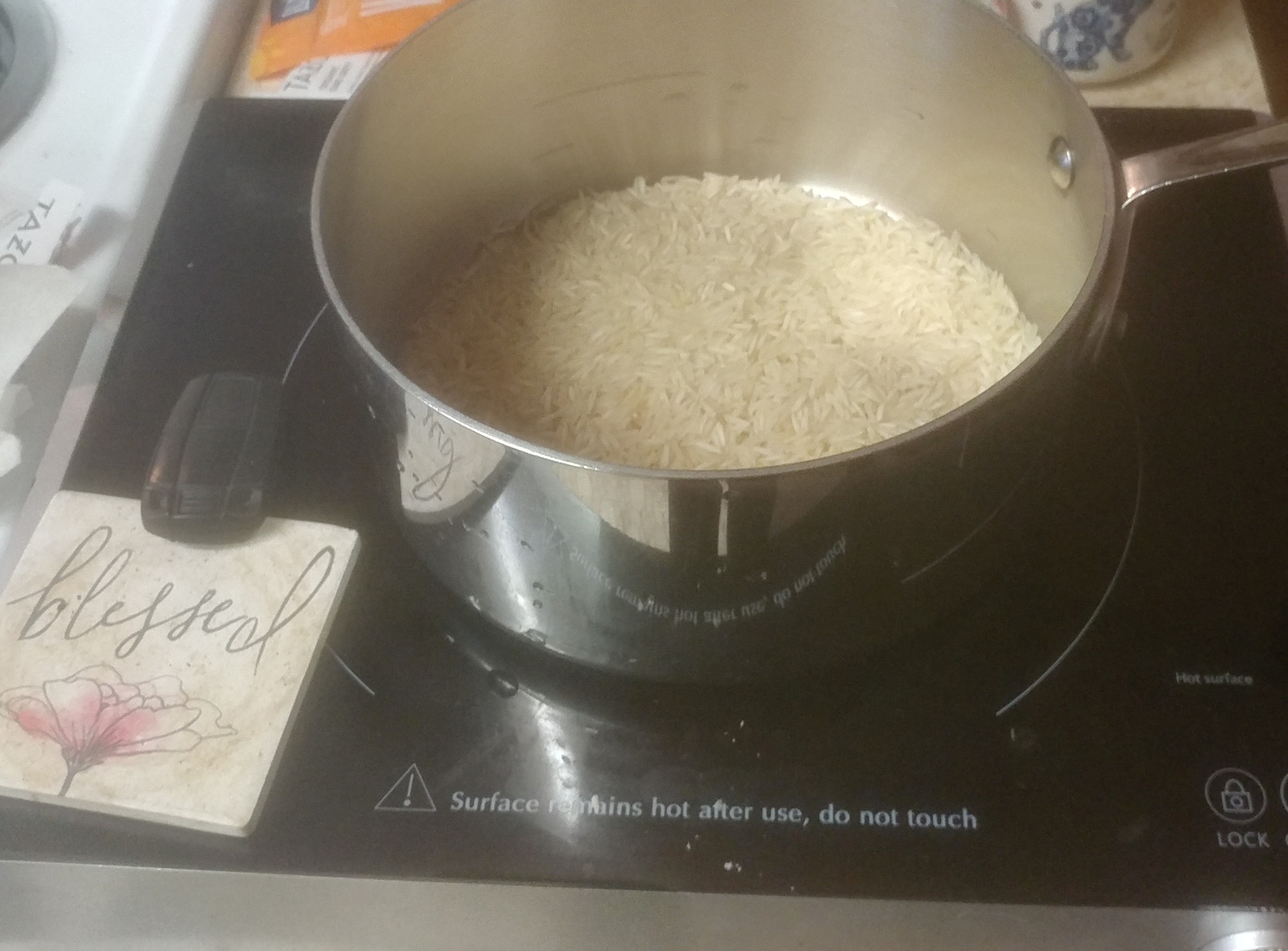Three (3) cups have crystal geezer springe waterBring to a rolling boiyuStirTurn down to a simmerCover