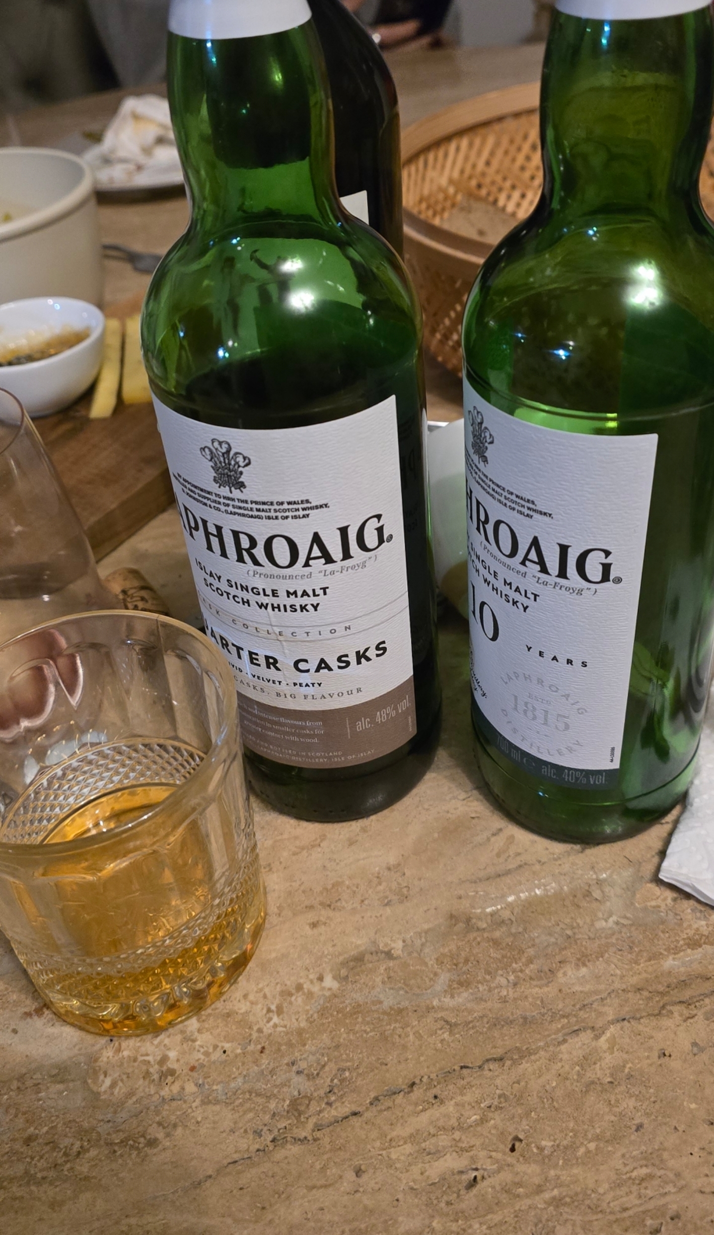 >>21817391Regarding Scotches, there are three main types of Scotch (there are other types, but these are the three main types):>peated Scotch>non-peated, bourbon cask-aged Scotch>non-peated, sherry cask-aged ScotchThose Laphroaigs are obviously peated Scotches.Other peated Scotches you may wish to try include (in no particular order):>Ardbeg Wee Beastie, Ardbeg 10, Kilchoman Machir Bay, Kilchoman Sanaig, Port Charlotte 10, Longrow PeatedFor non-peated, sherry cask-aged Scotch, Glendronach 12 is the obvious starting point.Someone else can give you recommendations for non-peated, bourbon cask-aged Scotch, as I prefer the bigger, bolder flavors of peated and sherried Scotches to the more subtle flavors of bourbon cask-aged, non-peated Scotches.