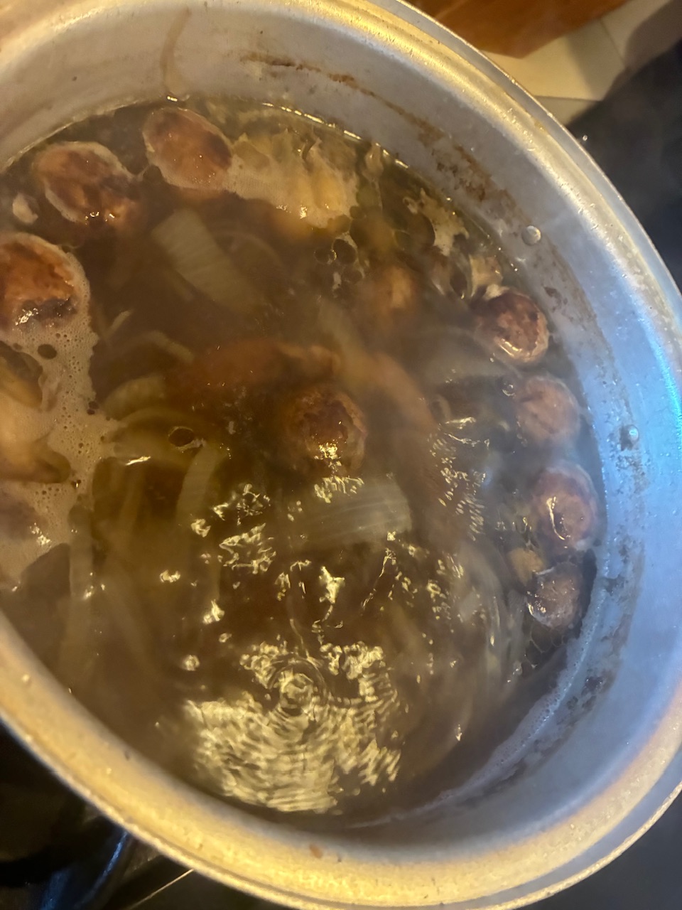 >>218174591 large beef soup bone1 onion Some whole mushrooms2 heads garlicPut it to boil, reduce and let simmer for 3-4 hours. Salt and pepper to taste. Dump it in a colander and seperate broth from meat and veg. Let the meat cool down, shred it back in the broth. Add back in in however much onion and shrooms you want and the soft garlic. Cook it down a bit more, and enjoy.