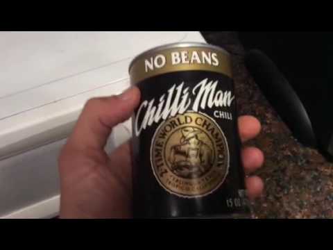 Chili man. It’s for me. He hands a can to me personally when I ask. No beans of course.