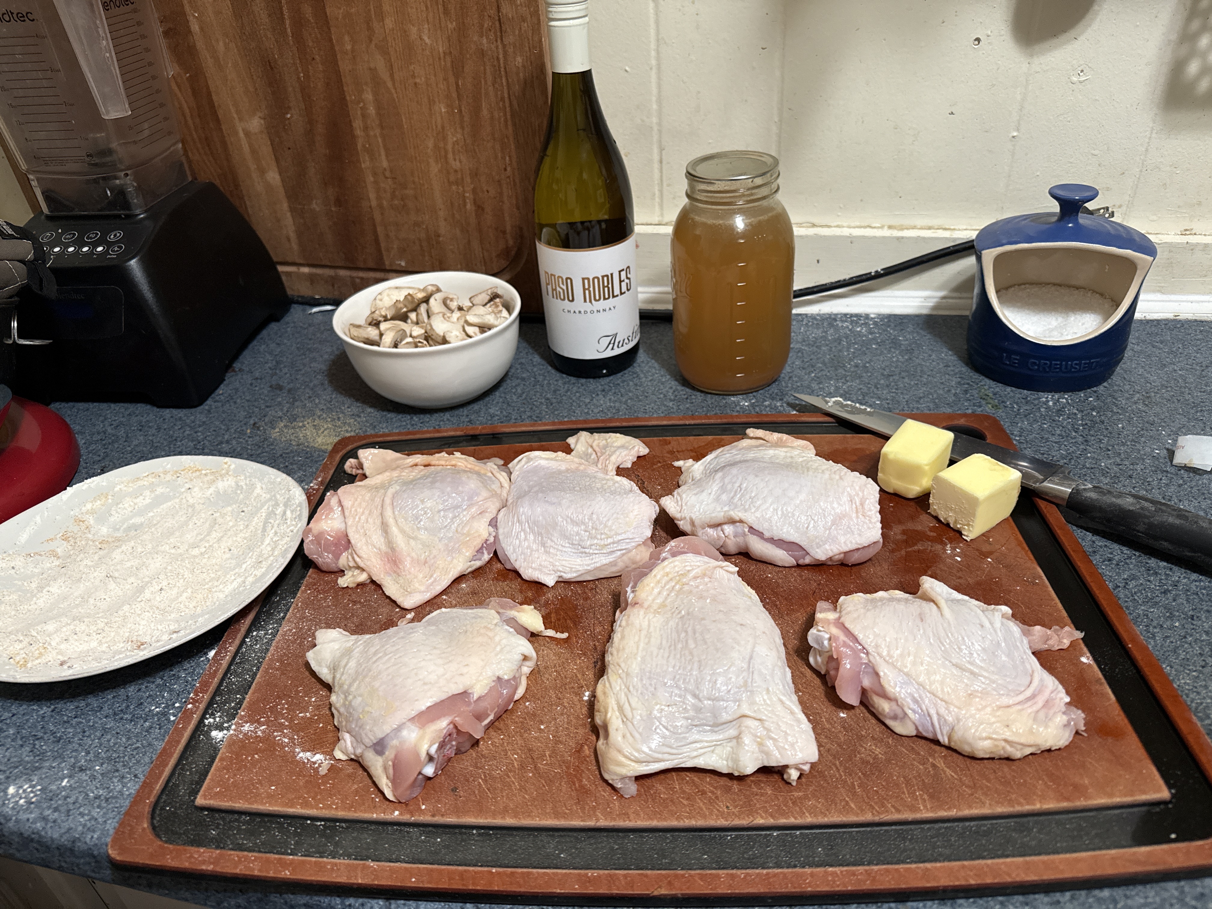 Chicken thighs are looking good!>>21819503I hold the pan upside down to show that the sauce is so thick, the mushrooms do not fall off, like Dairy Queen