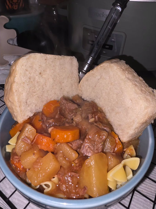 Okay I'll post my recipe, but if you ever make it you have say it's Jon's Beef Stew. A delicious beef stew with a little kick! Made on a crockpot. Ingredients:2 lbs beef stew meat, cut into 1-inch cubes32 oz beef broth3 tablespoons tomato paste1 tablespoon low-sodium soy sauce1 teaspoon sriracha sauce (adjust to taste for heat)3 medium carrots, peeled and sliced into ½-inch rounds4-5 medium-sized potatoes, cut into 1-inch chunks3 Cloves of garlic, minced 1 large yellow onion, chopped1 fennel bulb, trimmed and sliced into ½-inch pieces2 teaspoons dried rosemary (or 2 fresh sprigs)2 tablespoons all-purpose flour (for thickening)2 tablespoons olive oilSalt and black pepper, to tasteOptional: 1 tablespoon cornstarch mixed with 2 tablespoons cold water (for extra thickening, if desired)Make sure to use the 8 hour setting.