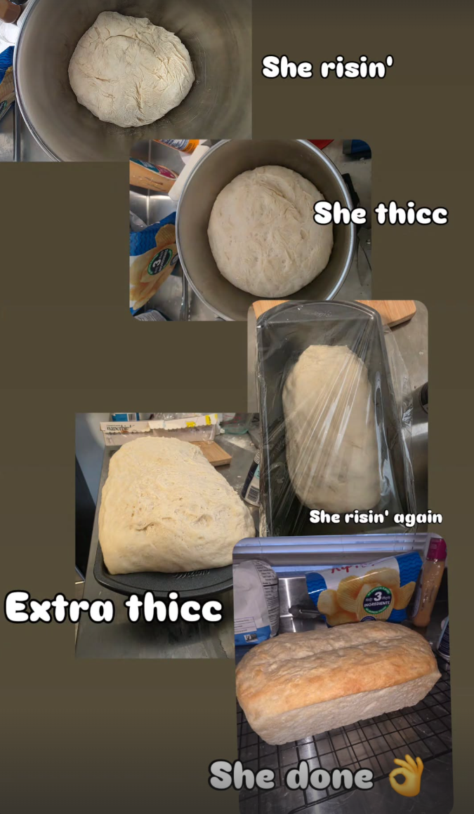 I love making bread, I like doing it without any fancy mixers or bread makers. Just a wooden spoon to get things started, your hands, and a clean floured surface to knead is all you need. Pic related, snipped it off my IG story. Post some of the bread you made! None of that store bought shit.