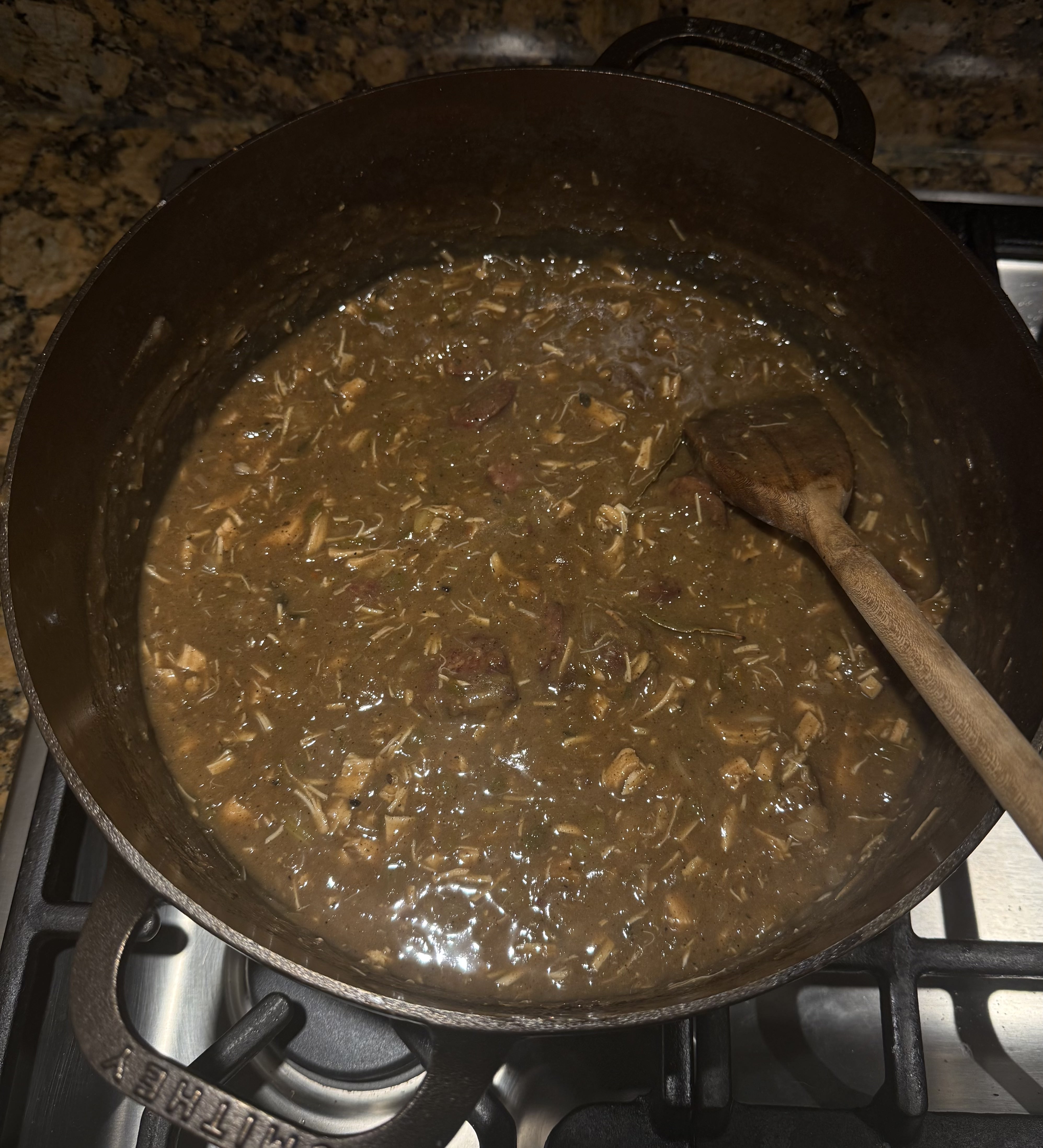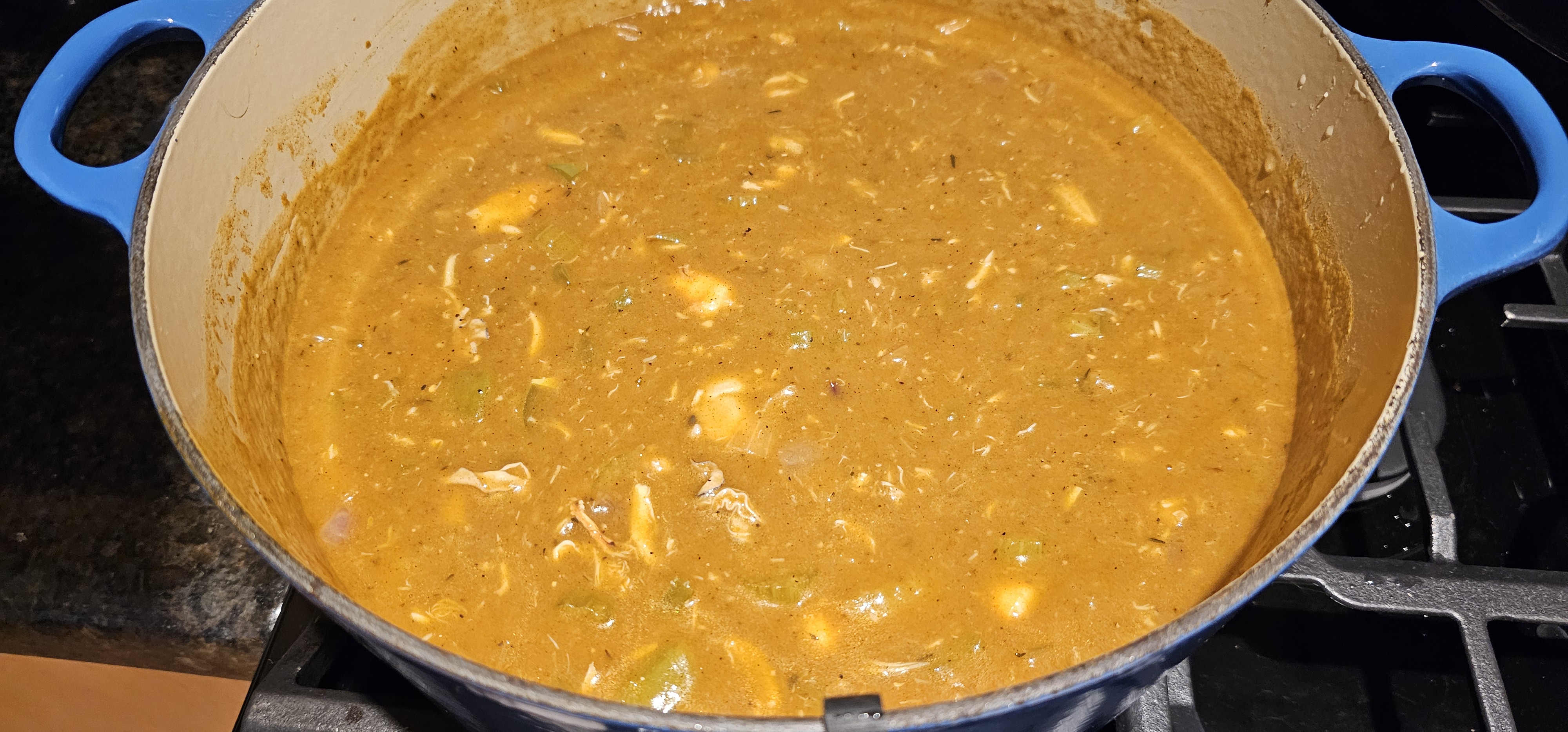 >>21826832did you only make a blond roux? normally I go for a dark roux and then hit it with amber ale to deglaze then chicken stock...but if u didnt make a blond roux why is yours soo pale?