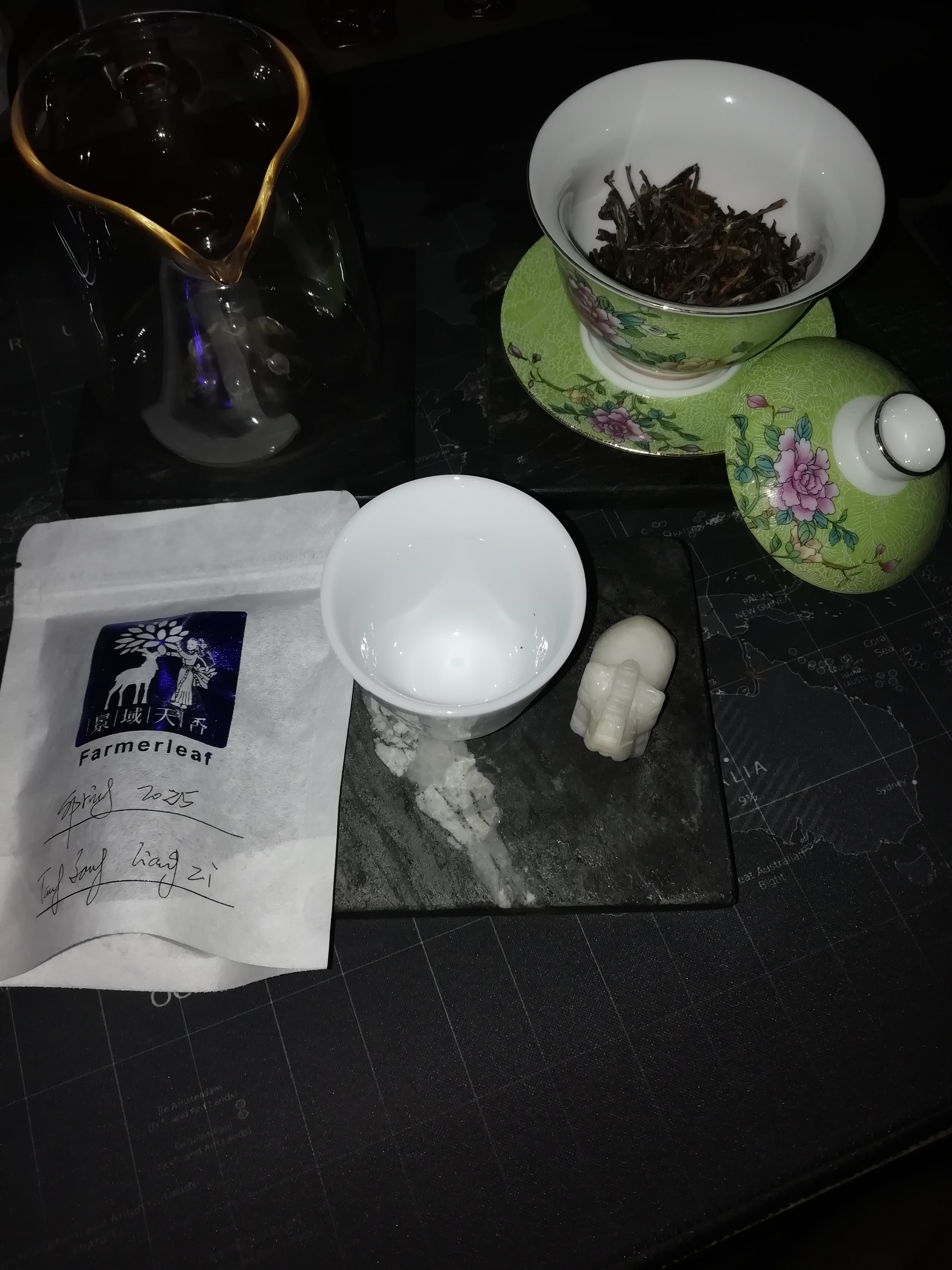 Just had some 2003 Brown Changtai again. It was quite relaxing and warming. It was nice to compliment the cold weather. So far, just kind of straight autumn leaf pile notes with a sort of sweetness and maybe a tiny bit of apricot. Got more honey-like sweetness in the latter steeps.