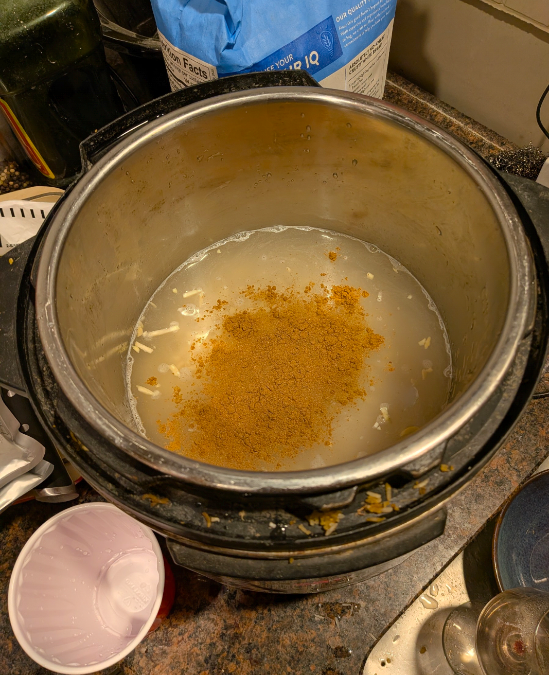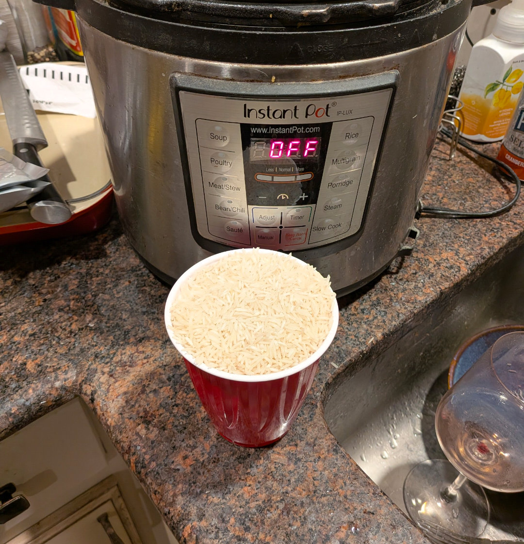 >>21835293And here we have our trust measuring device. Claude told me 1:1 is fine for basmati in a pressure cooker bc not much liquid loss. I always used 2:1, and did this time also, so we'll see. >>21835298I'm a successful business man facing the world, and living like a terrorist at the moment >>21835300Basmati rice with baharat and almonds Dal makaniHeated up Costco chicken nuggets