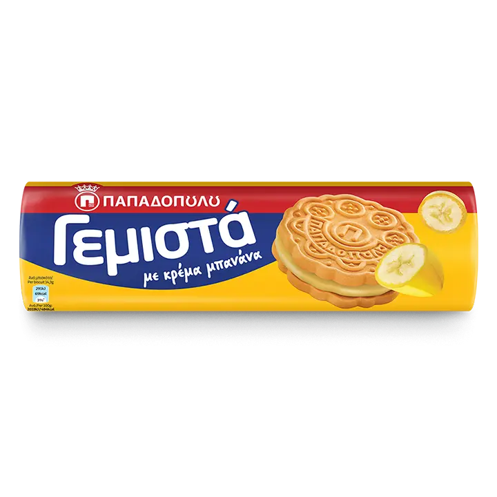 >>21849372>Ingredients: Wheat flour, sugar, vegetable oils (palm oil, palm kernel oil, shea oil), starch, banana powder 1,5%, glucose-fructose syrup, lactose (from milk), bulking agent (xylitol), salt, raising agents (sodium carbonates, ammonium carbonates, diphosphates), lemon juice powder, colour (curcumin), emulsifier (soya lecithin), flavourings.>banana powder>no HFCS>no mutogenic TBHQ, cope mutty