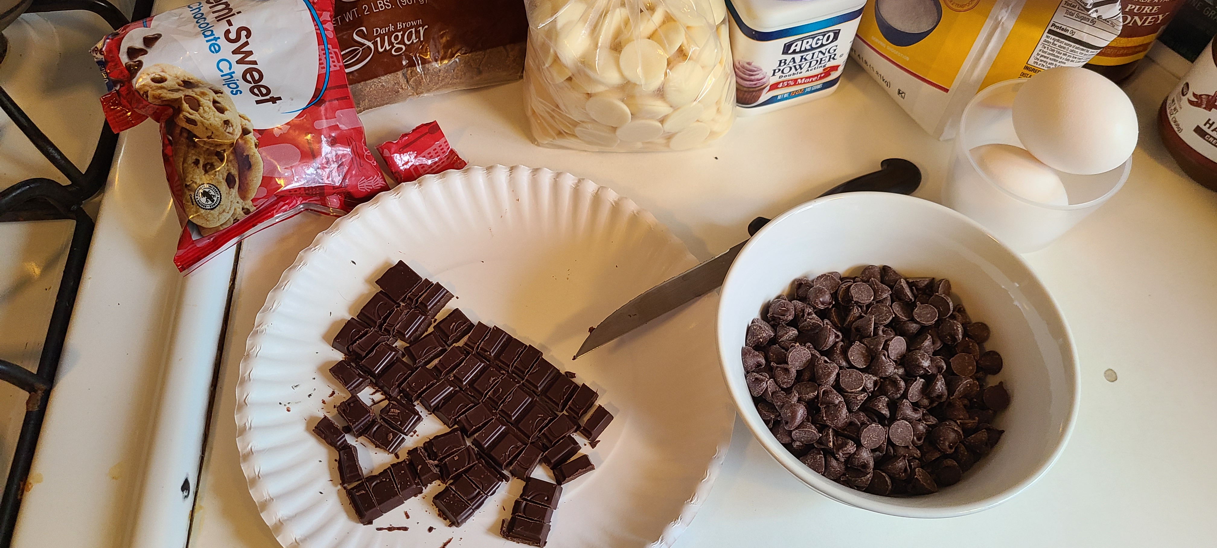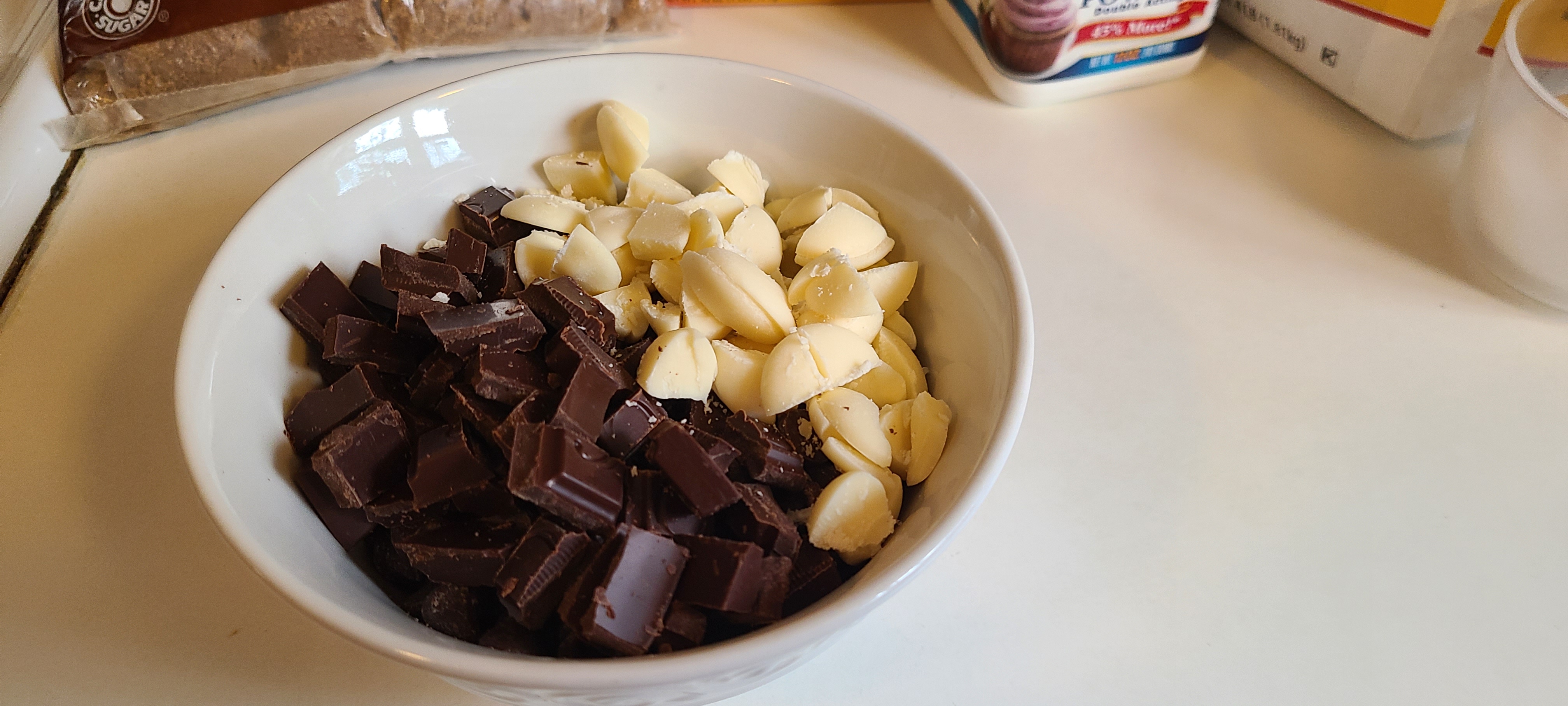 >>21882648Cute frierenSo I've got >one cup of semi-sweet choco chips>1.5 bars of choceur dark chocolate which were cut into rectangle chunks (this is my go-to for baking anything that requires chocolate. Solid choice. Also comes in milk chocolate. Usually used for chocolate glaze in other deserts)>white chocolate confectionary wafers. Normally I just use white chocolate chips, but I had noneTry to avoid the mini chocolate chips, they just wont look very good in your cookies unless you deliberately make them tiny
