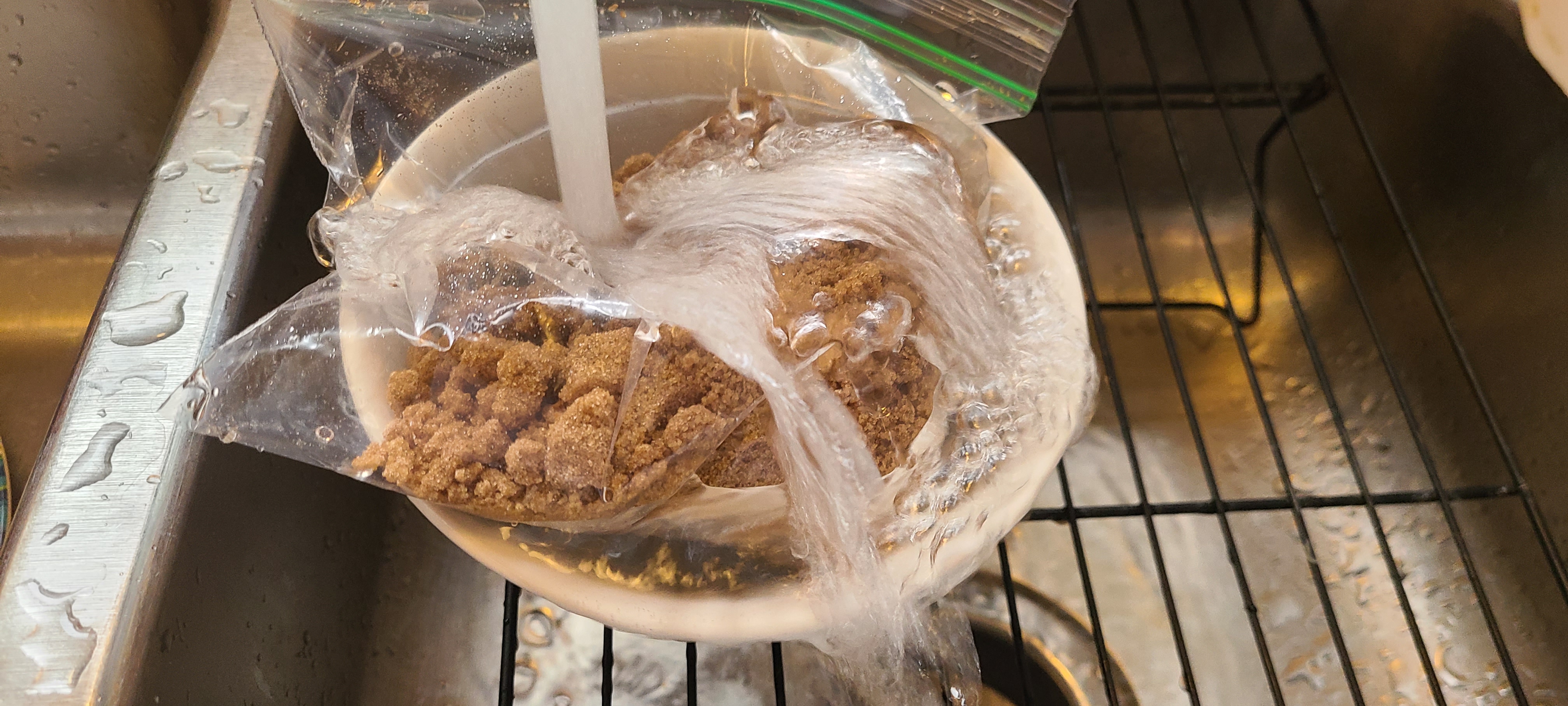 Now, I haven't used this brown sugar in a while, so it crystalized into chunks. I left it under running warm water yesterday for a bit and that broke it down from one huge chunk, but it's still too solid