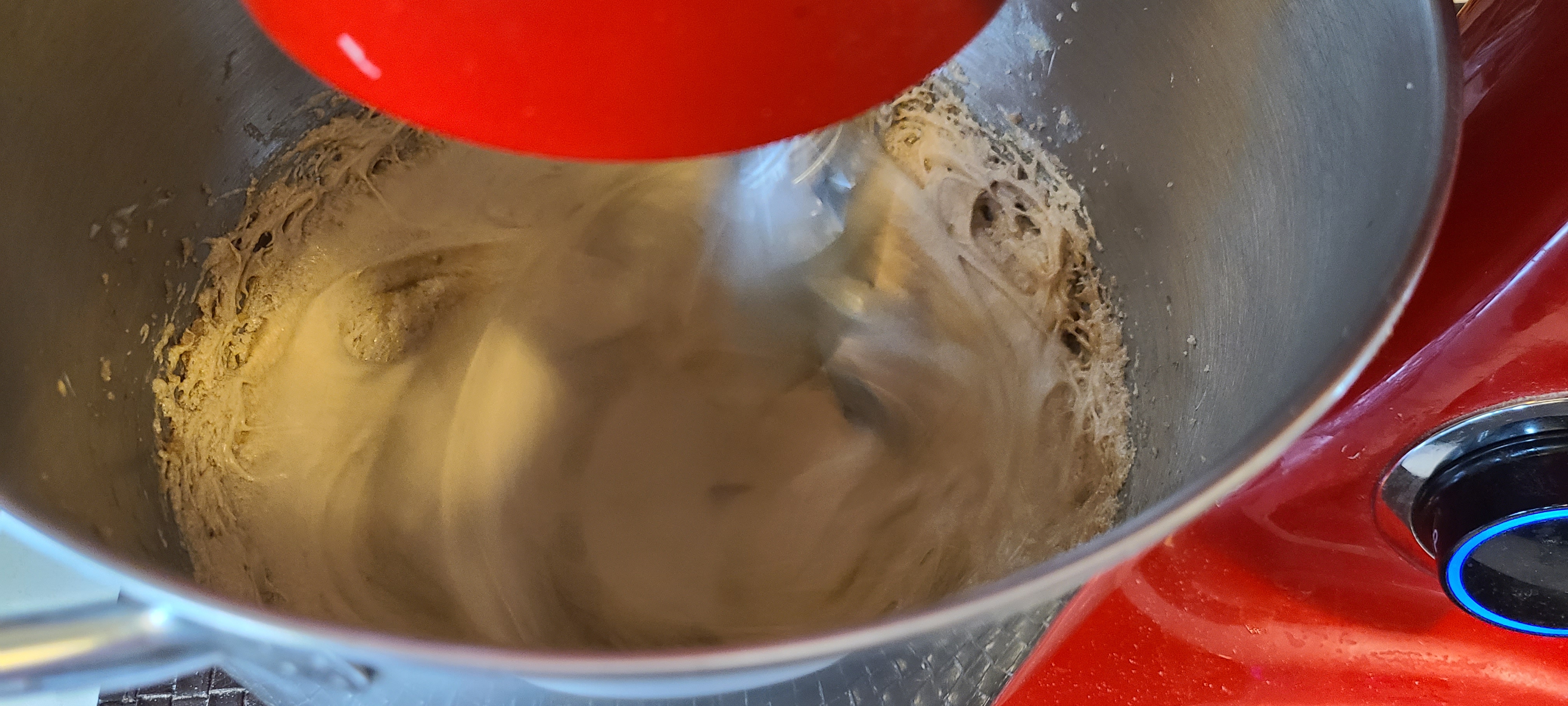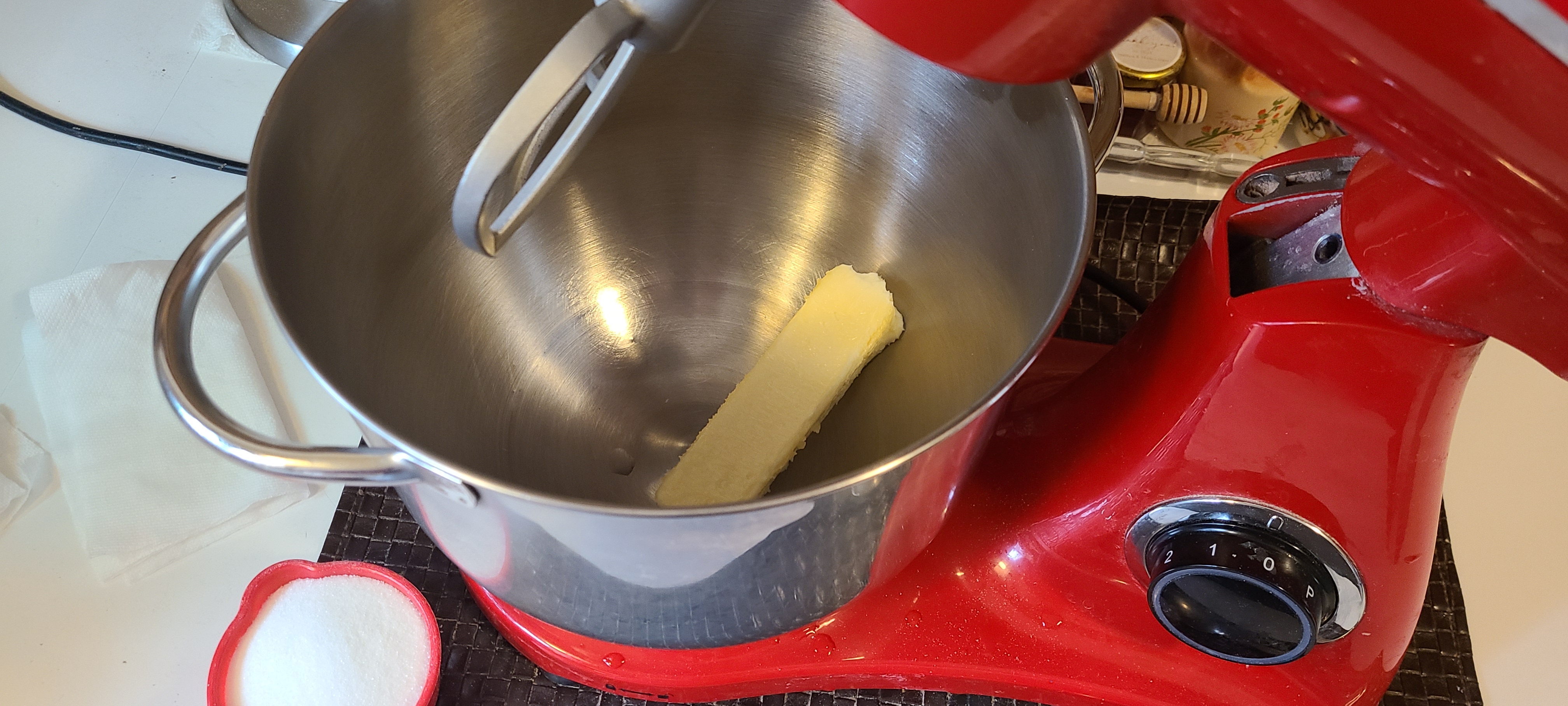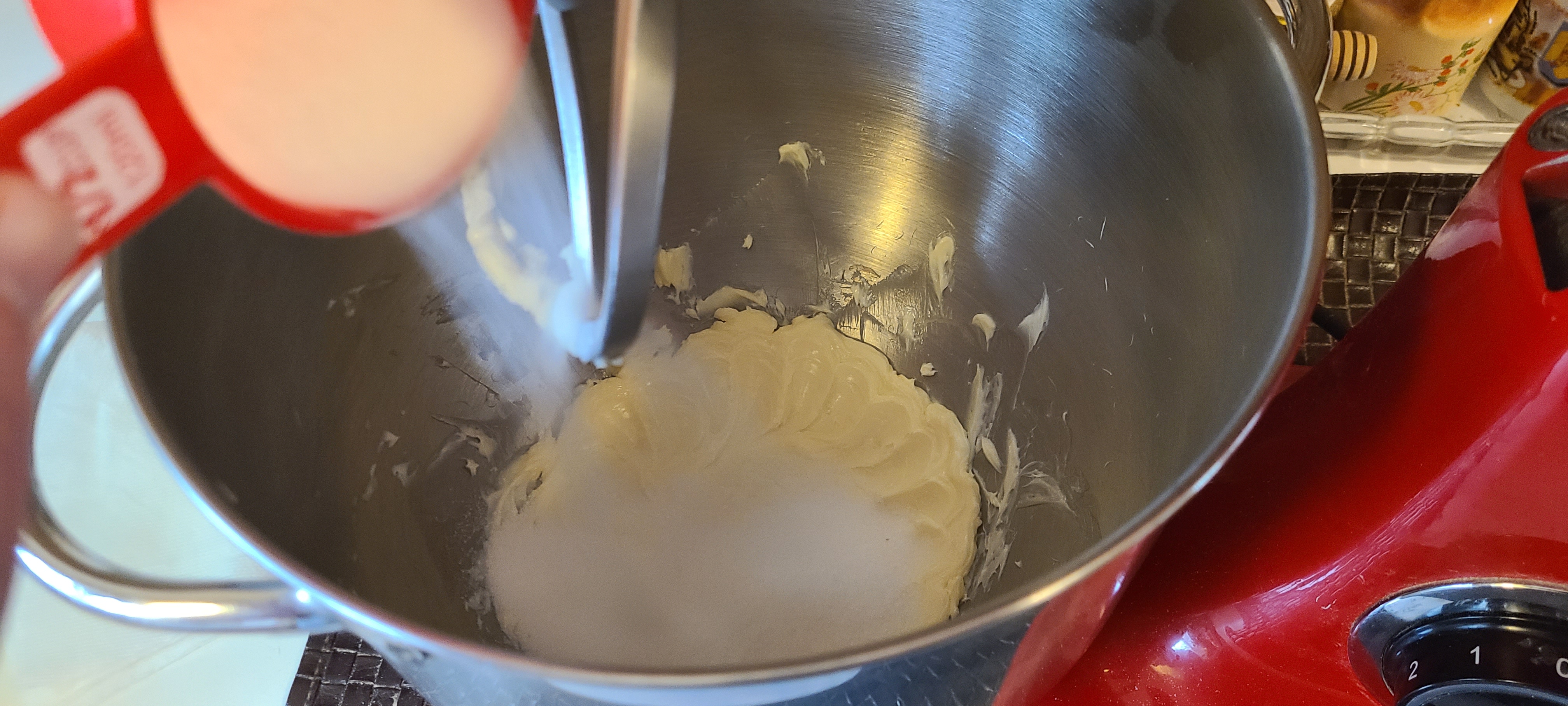 >half a cup of granulated sugarAfter the butter lightens in color and gets a bit fluffy. I couldve probably beaten it a bit more until in increased in volume, but it's hard to tell when there's already so little of it in there
