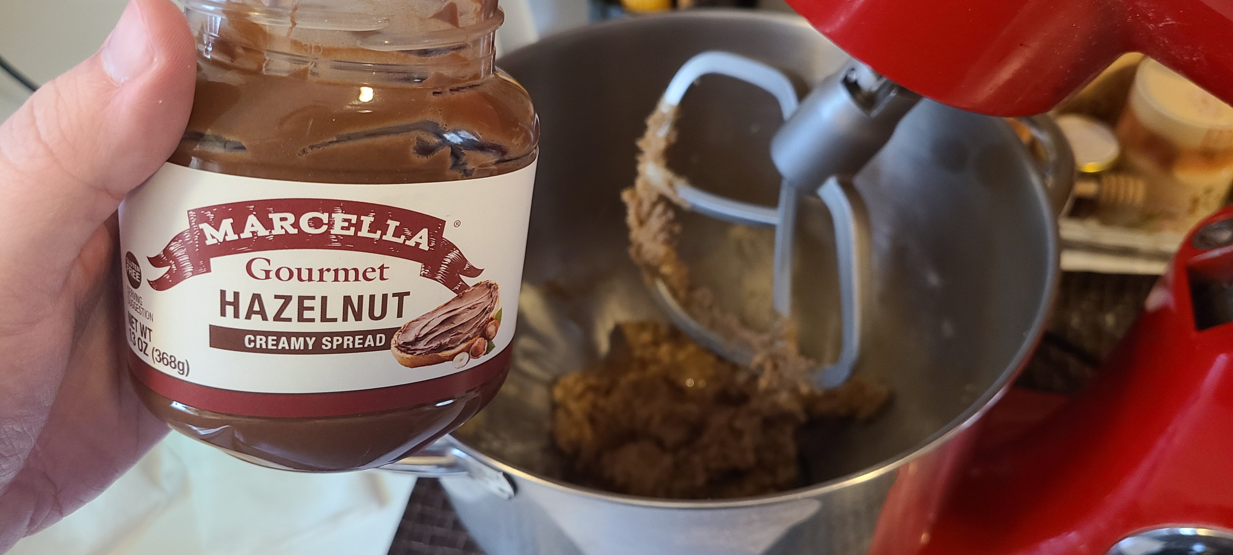 And a little bit of this hazelnut spreadThis ended up being virtually useless as it didn't change the taste at all. I used this instead of peanut butter, which I skipped out on because the jar I have is a little old and plus I don't really like peanut butter to begin with. But I will admit that peanut butter does add a good taste to cookies when used lightly. I assumed the same thing would be true with this hazelnut spread, but it just didn't matter that this was in at all. Maybe I didn't use enough?