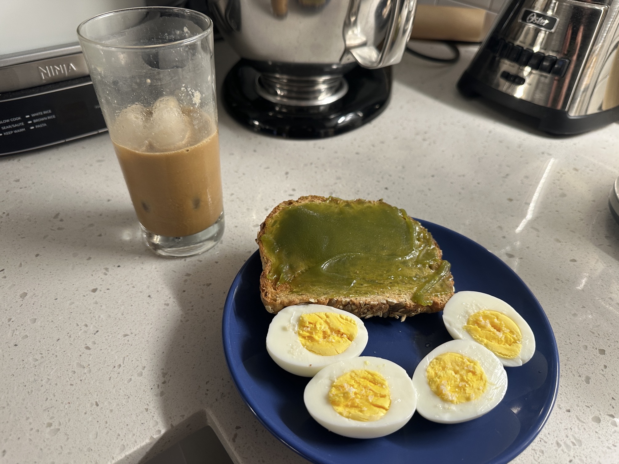 Part of a complete breakfast.>Eggs with lime salt>Toast with matcha butter>>21884013Yummy!