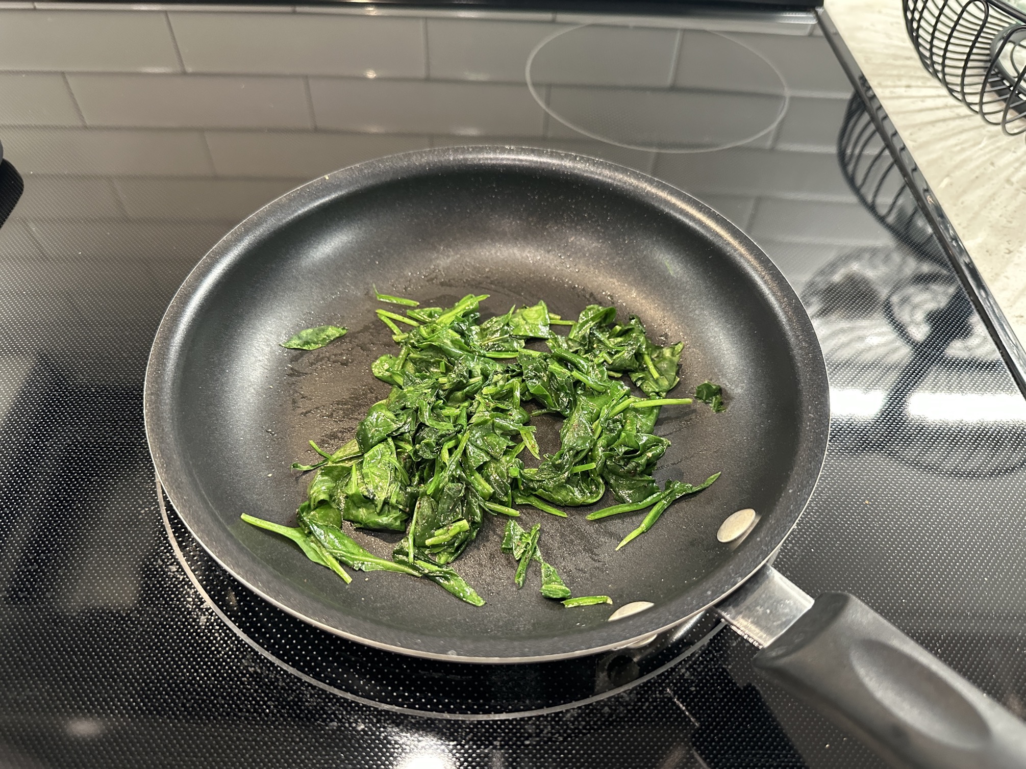 Spinach gets cooked down a bit with some pepper