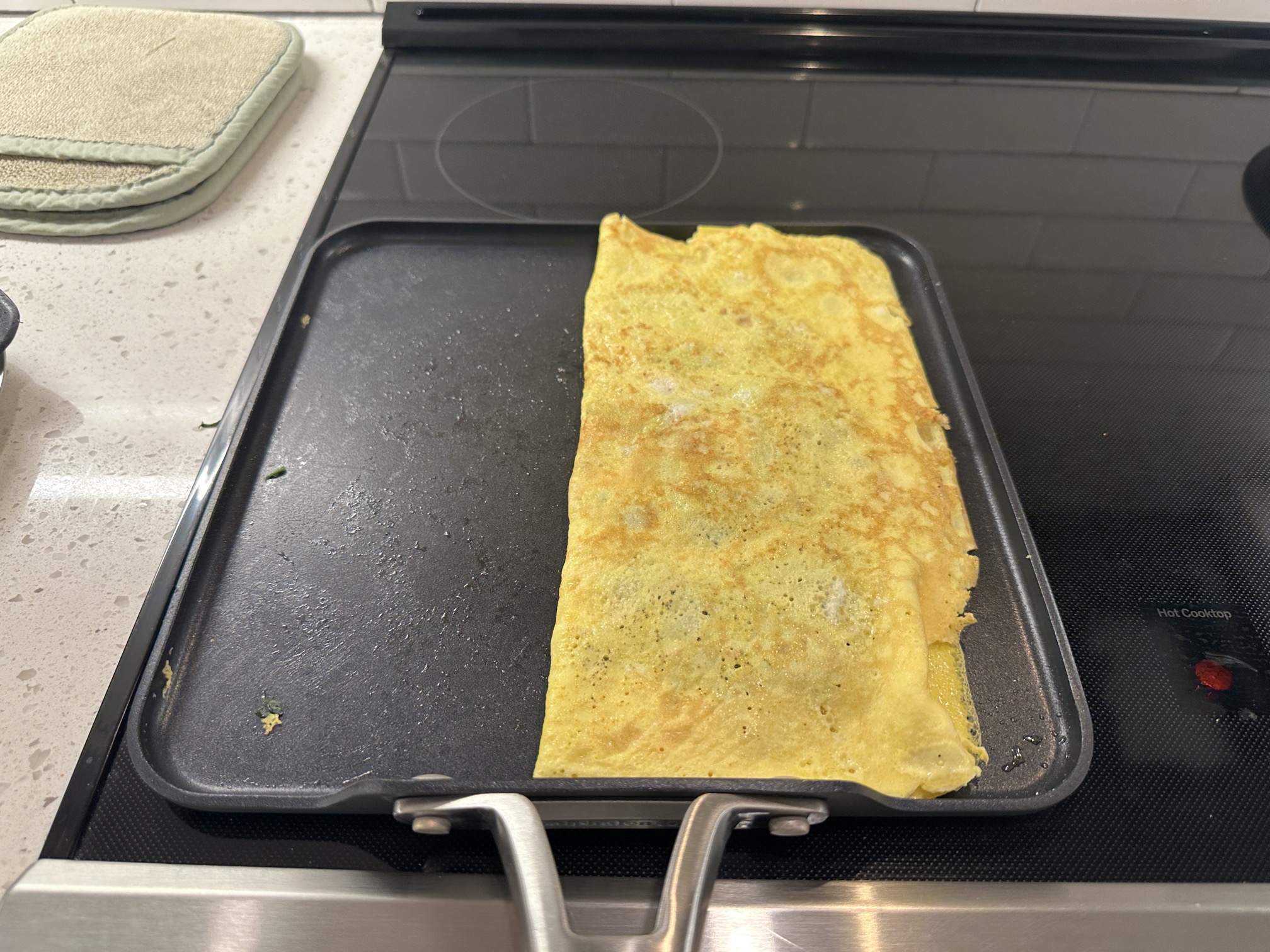 Baby the pan, rotate and shift to get the corners done, let things set up and then… the flip!