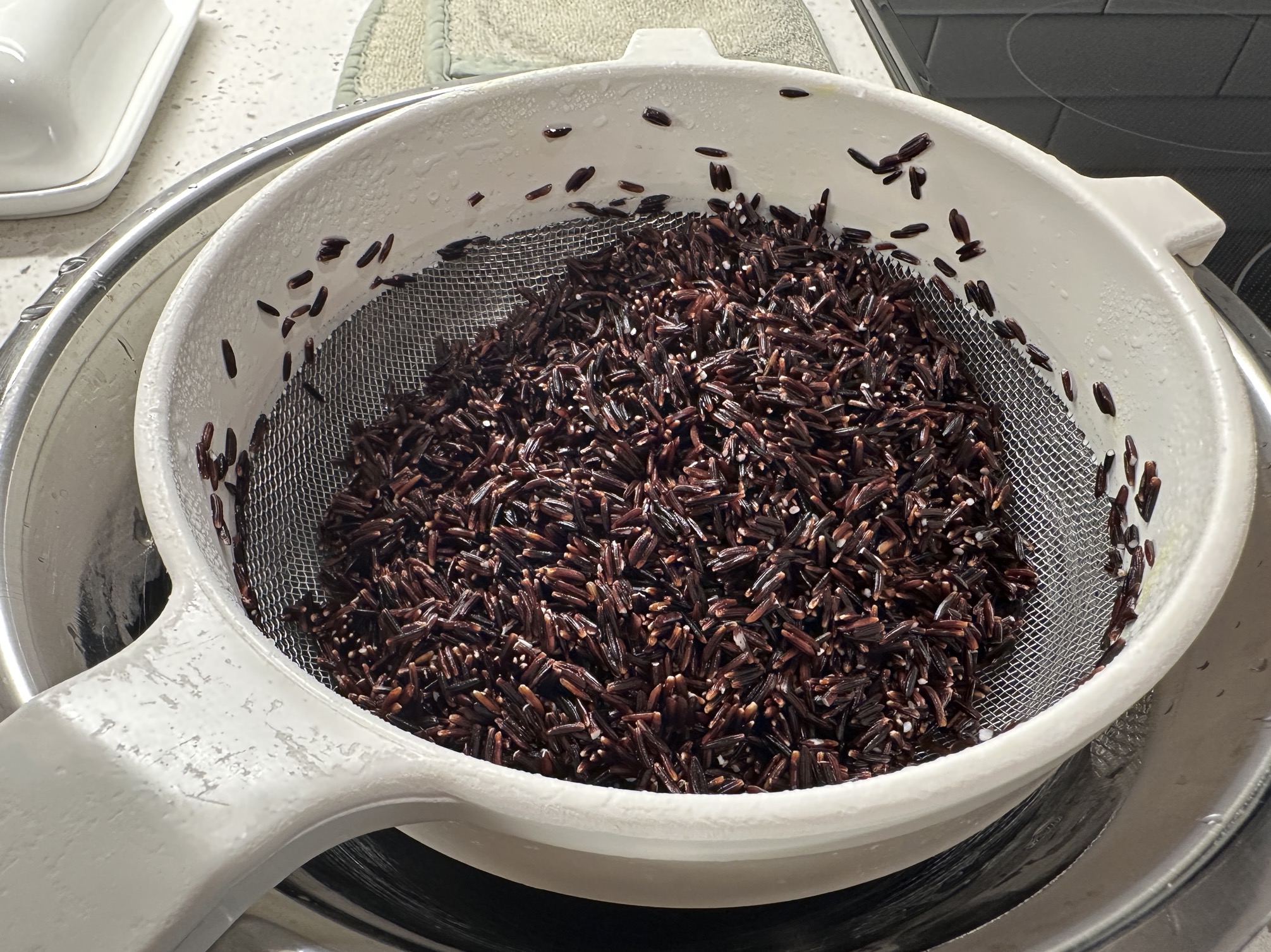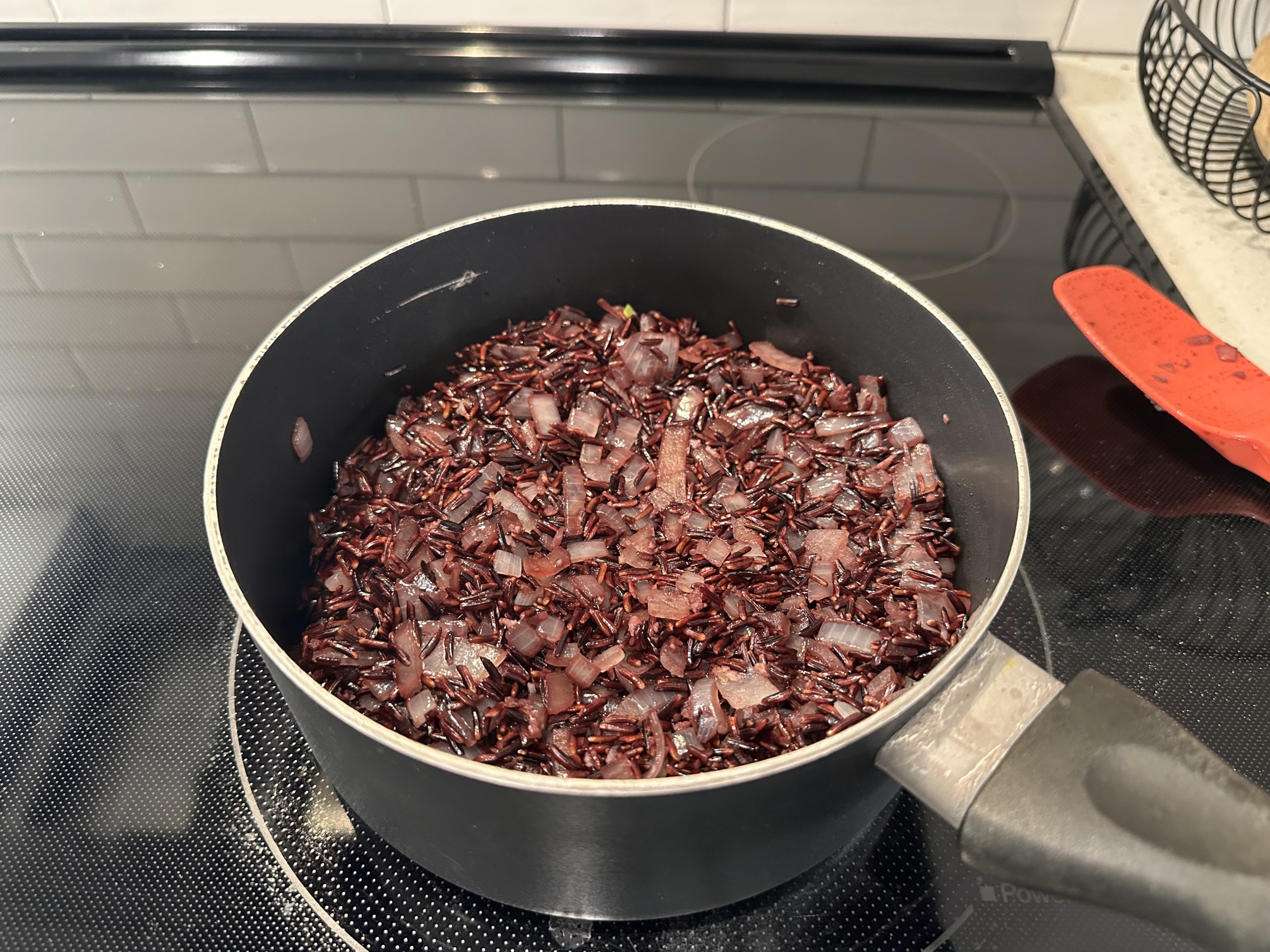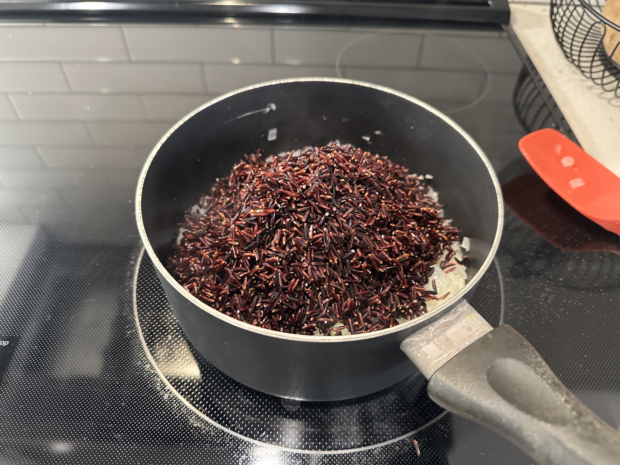 Rice toasted a bit, for activation.