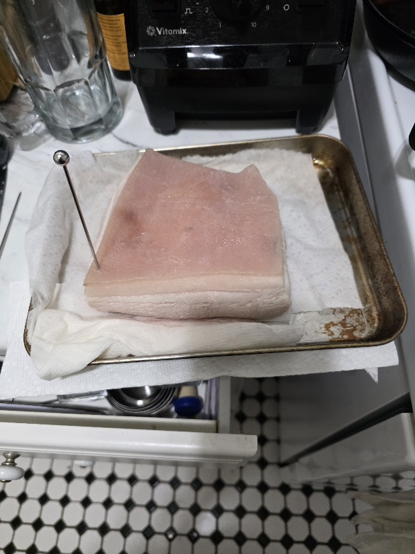 Poking a tonne of holes in the fat. Took like twenty minutes. Also in hindsight I should have leveled out the meat side of the belly a bit but I guess it's fine.>>21886253I'm not hosting this year but just bringing a dish (or three), thankfully.