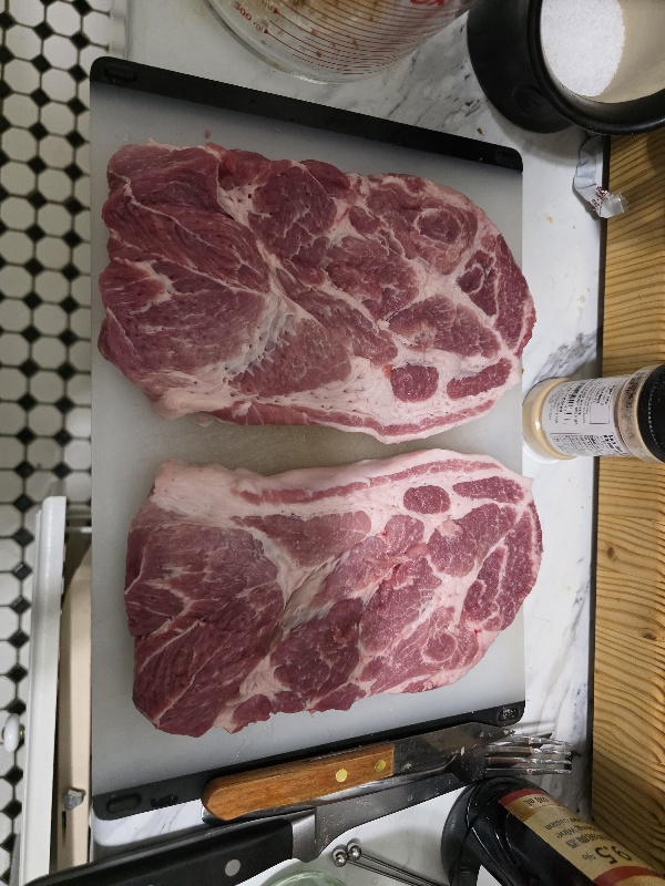 >>21886736Cut up. Probably just going to bring one slab for dinner tmrw and keep the other slap. Still have 40pc of the butt leftover which I'll freeze for some other use.