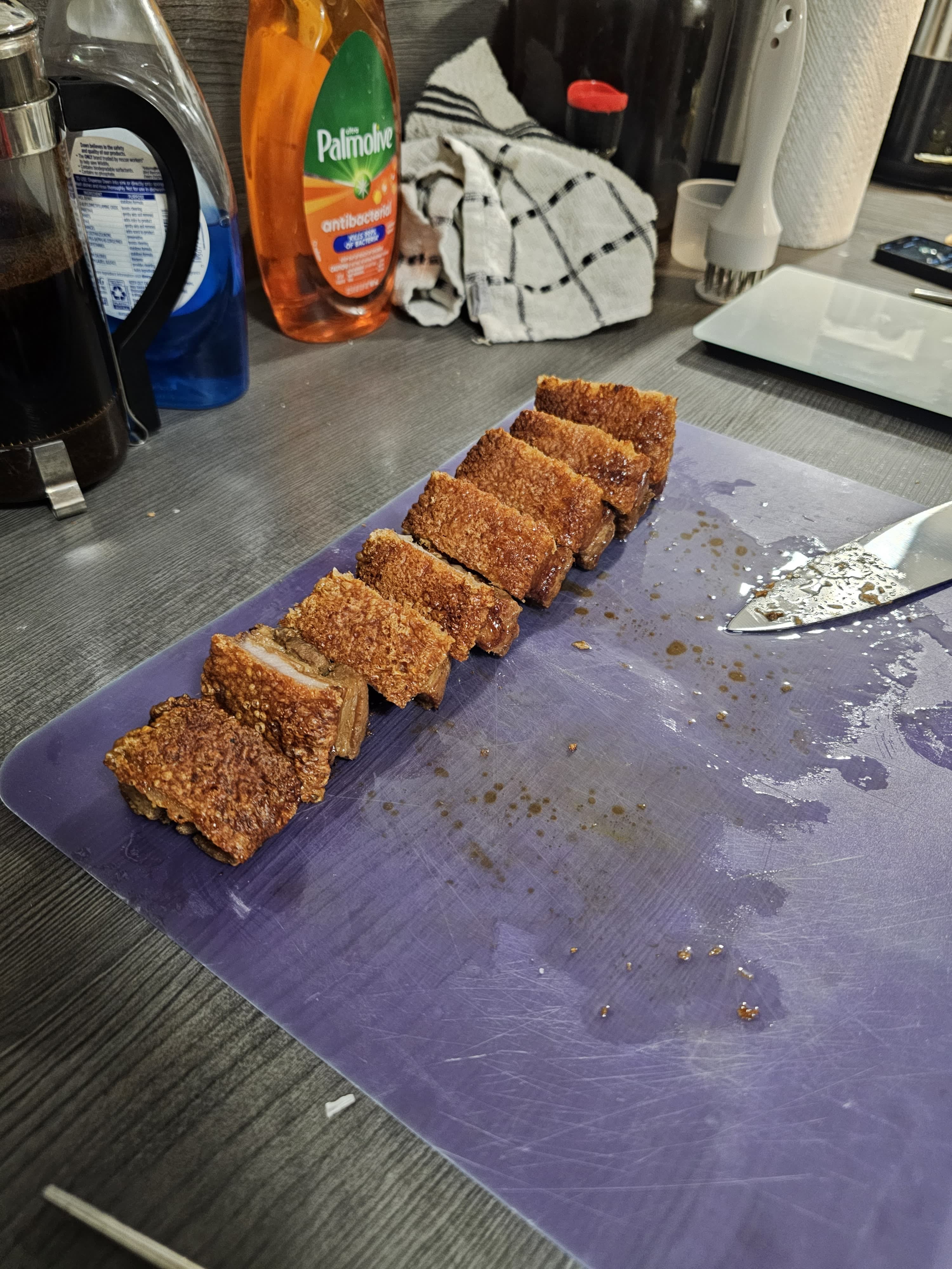 I don't celebrate it but I absolutely love making roast pork belly in the ovenThrough trial and error and trying out combos of different guides to cooking it, I've found what works best for me in my temperamental ovenPic rel is the best one yet, edges didn't burn and the skin was incredibly crispy. Made me really wish I had a proper cleaver instead of a bog standard kitchen knife