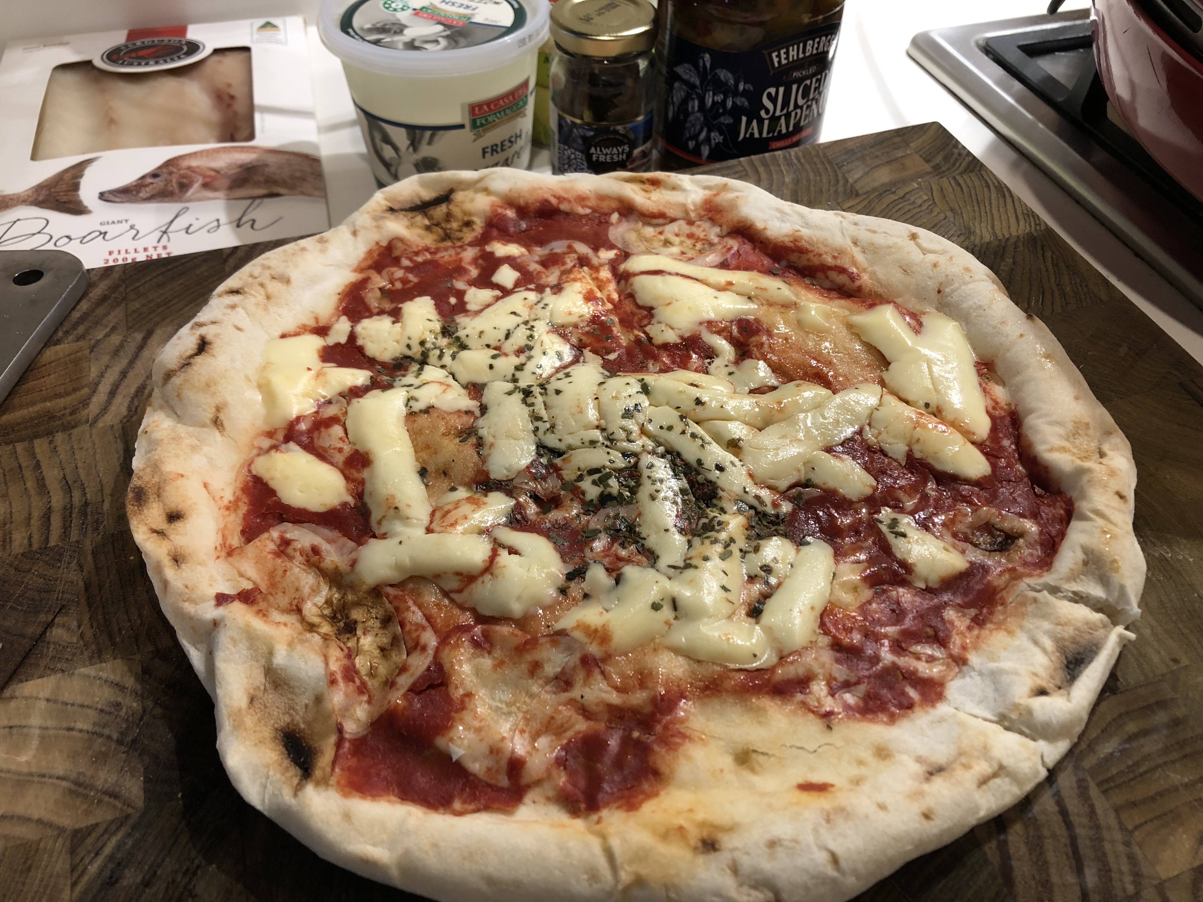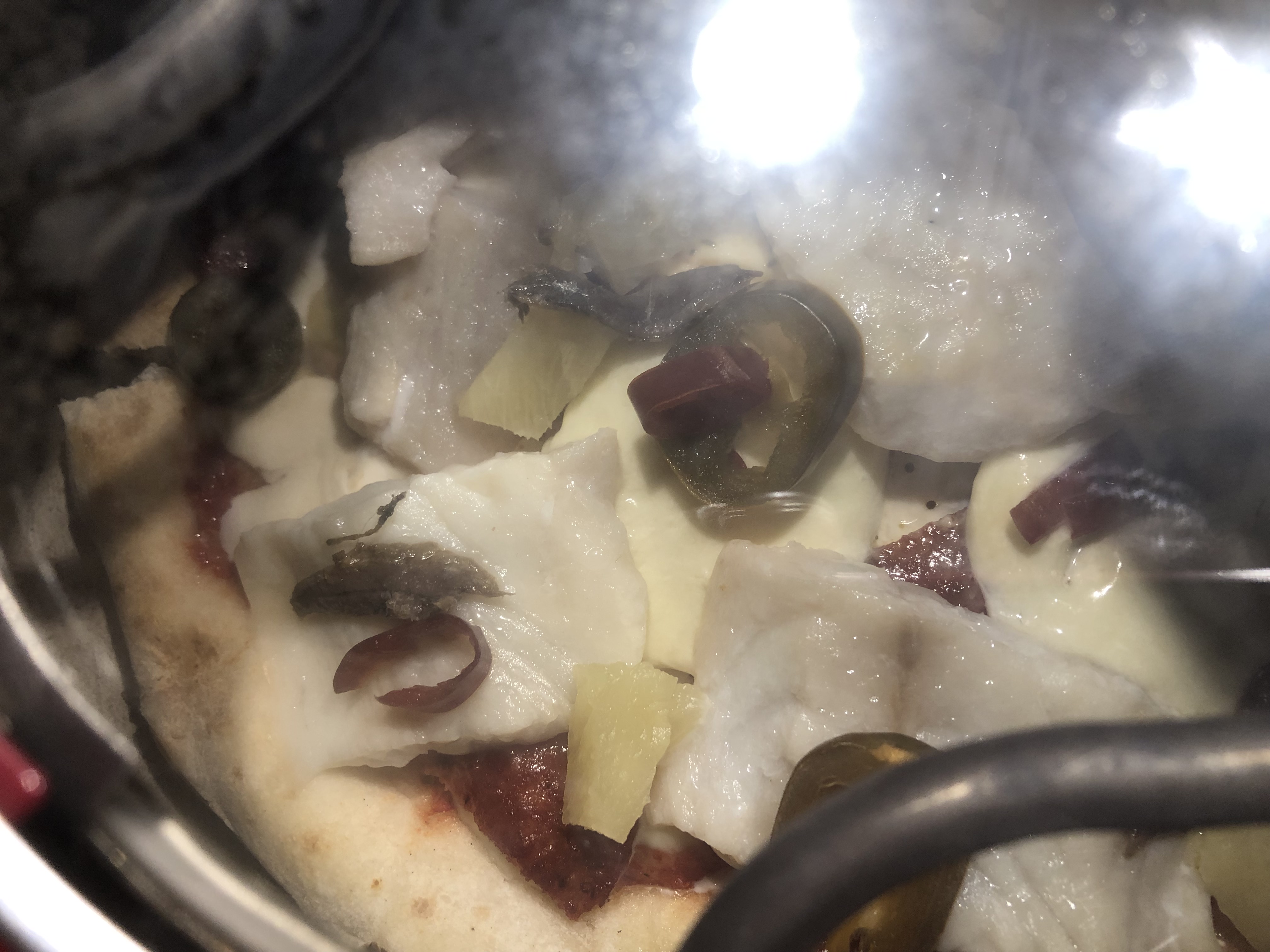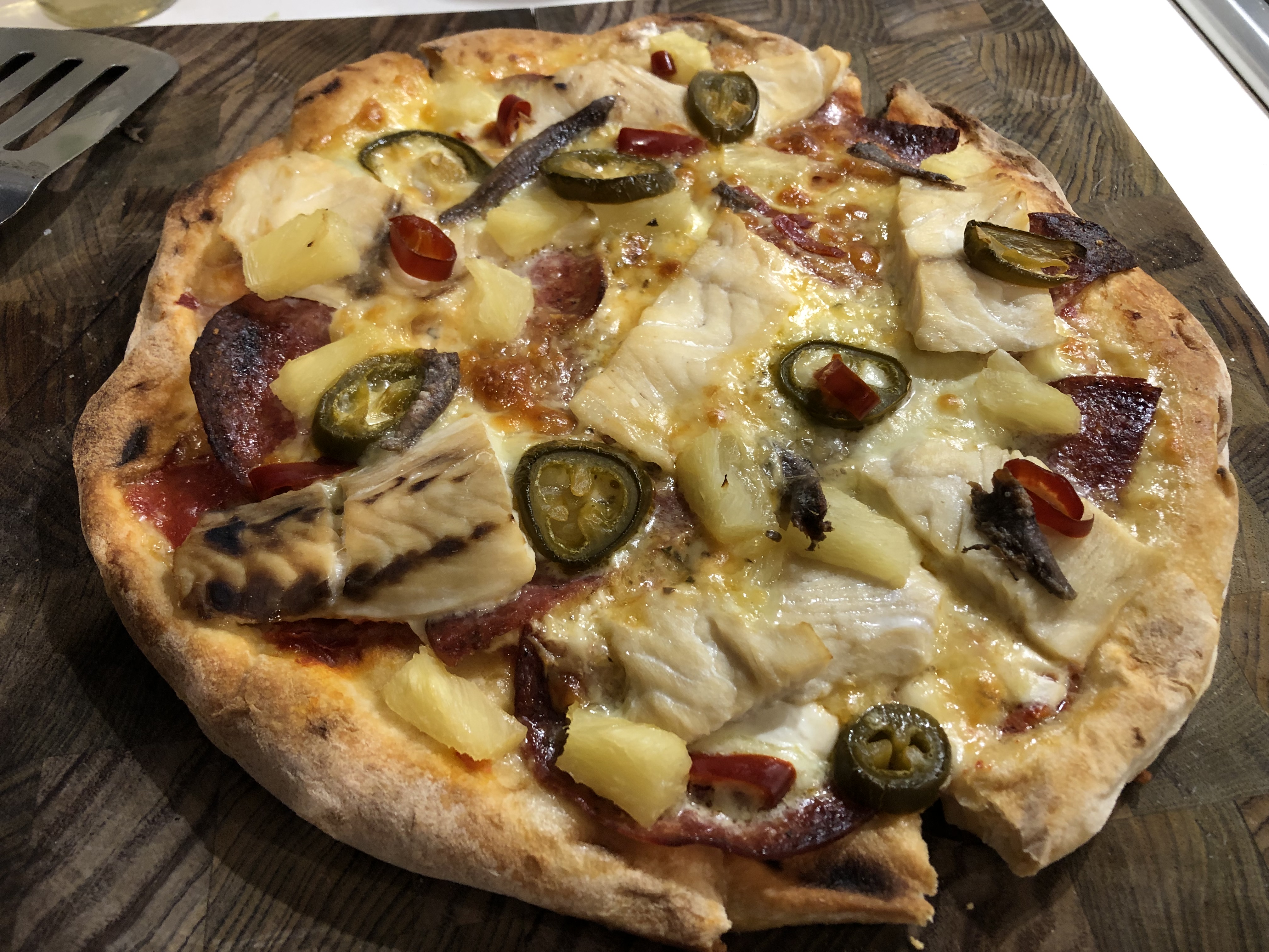 Cookin up a tropical chilli fish pizza