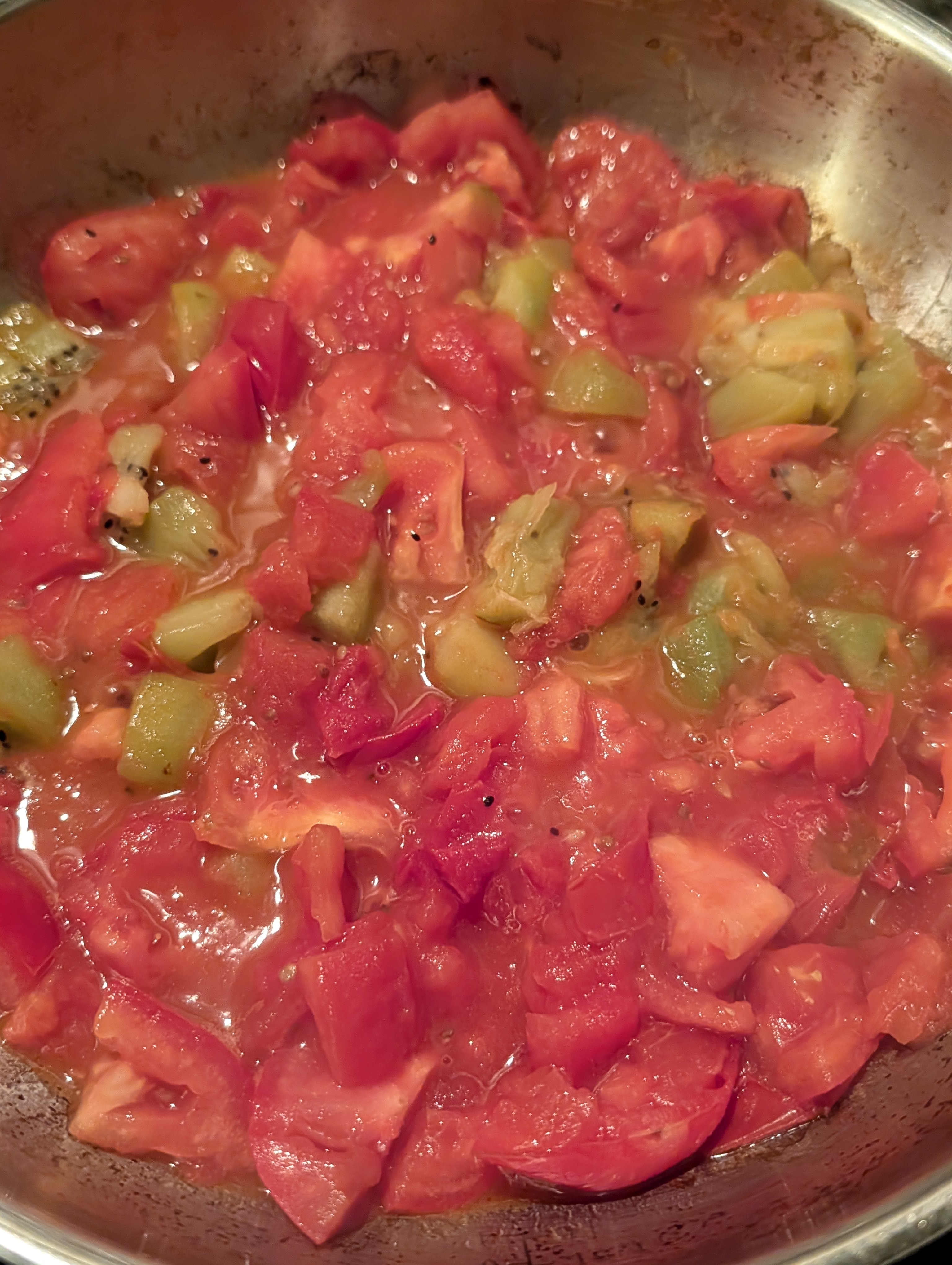 The kiwis broaden and add complexity to the flavor on both ends. They have a tangy fruity element that's similar to cherry tomatoes, and a sugary element which caramelizes to make a rich and deep flavor, and they also add a tropical twist. Altogether it's really the next generation of tomato sauce which is worth starting a whole thread just to share.