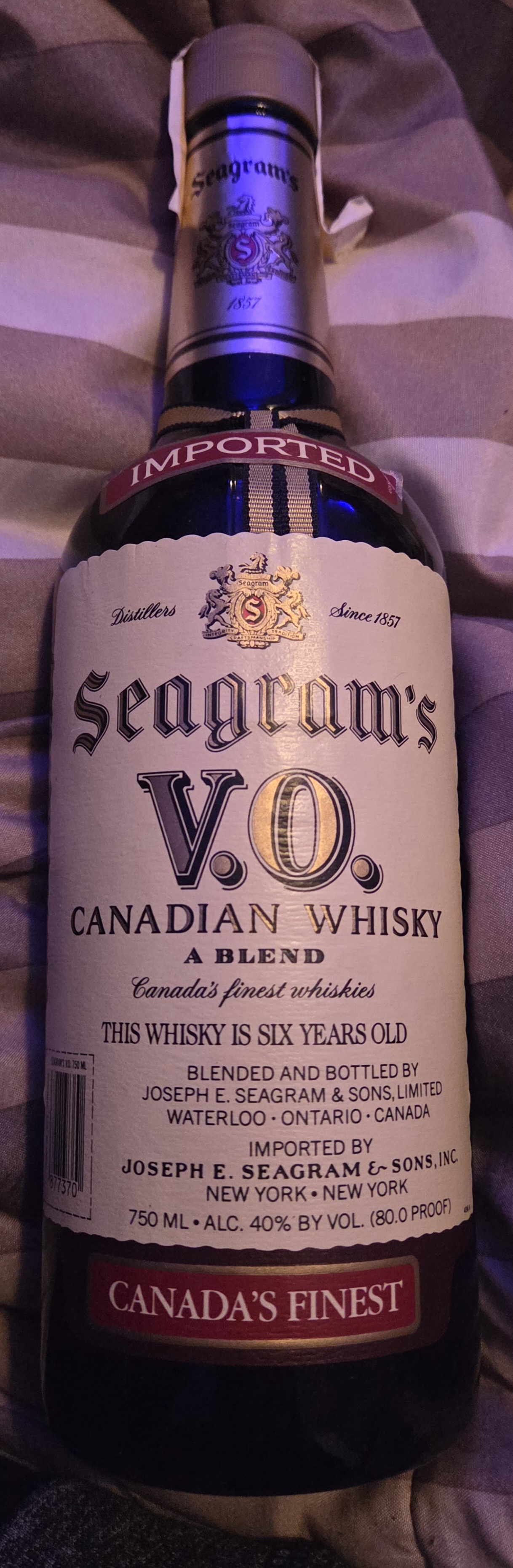 Got a pristine unopened bottle of this Seagram's from my grandmother (she only drinks white wine, was my late grandfather's). Anyone know much about it? Mine has a tax stamp for 1987. Hear it's not a pricey one even now, but I think it could be a fun one to drink neat sometime. I'm used to modestly-priced, newer bottlings. Never something this old.