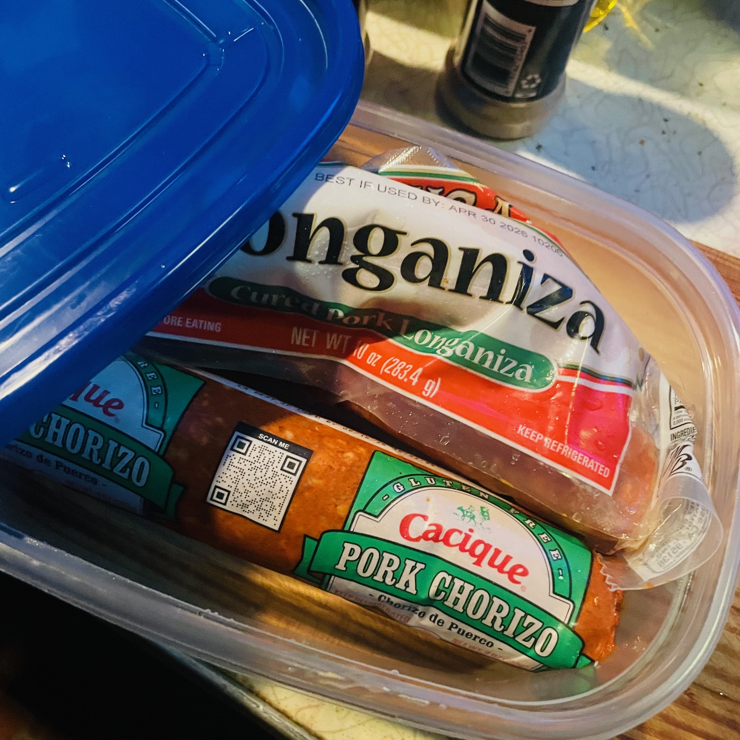 Store these together for next time. This is the only drawback of the "best of both worlds" chorizo union; you may not eat it all in time. So I'll probably freeze half of each, maybe even mix them together first. As much as I enjoy chorizo and eggs, I really only want it once or twice a week. I prefer bacon and eggs, and many days I don't want eggs at all.