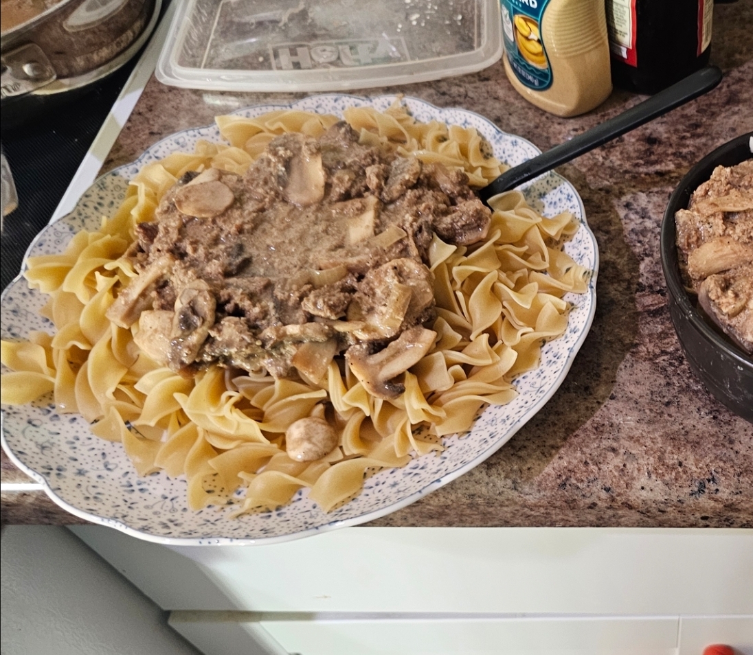 Do what you want with that info, I could be wrong, you do you. All I'd add is to try some alcohol (wine) at the end of the onions mushroom cooking, let it reduce some to not mess with your consistency, then proceed as normal, or as you see fit.