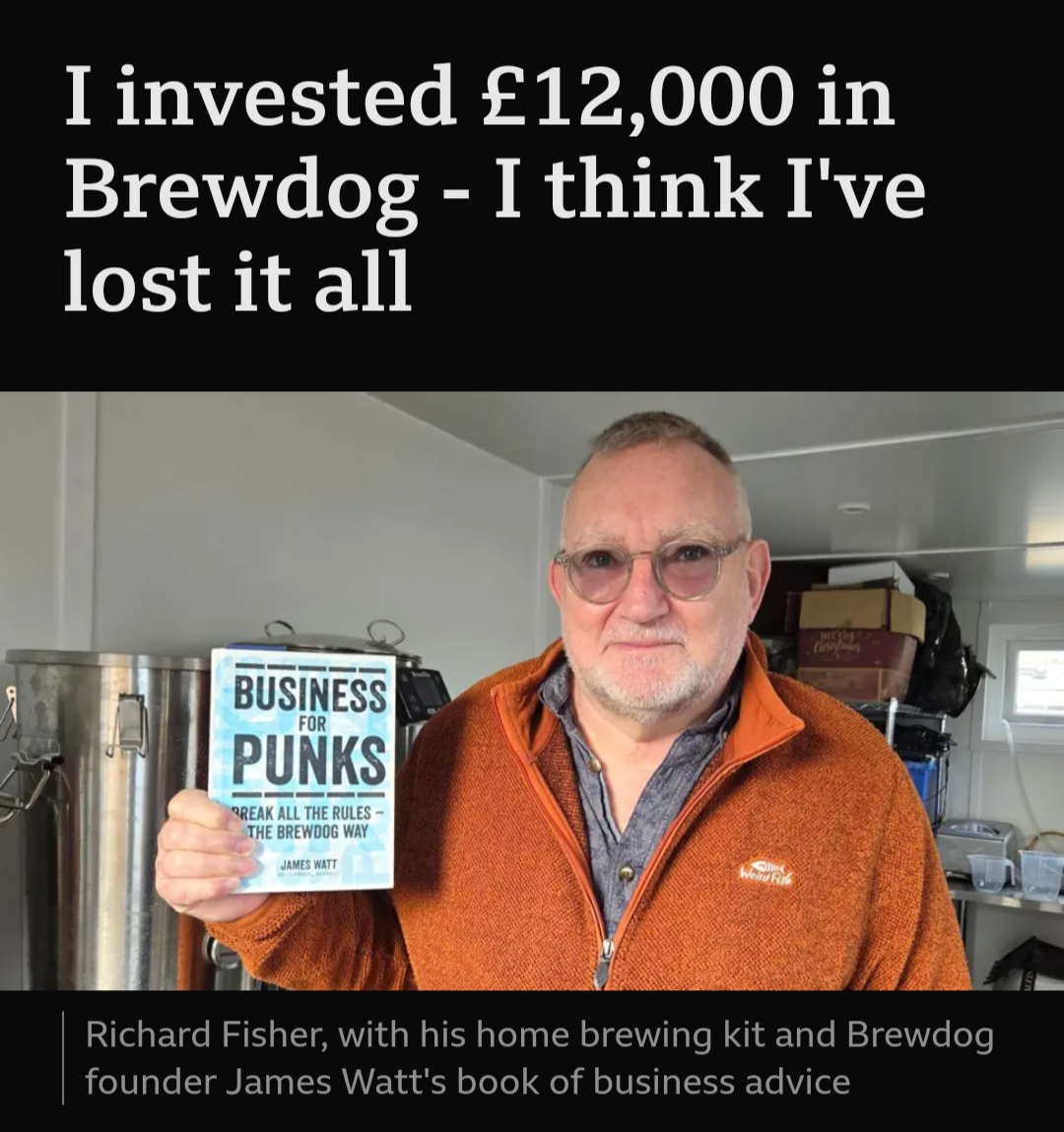 Brewdog's been fucked financially for years. It rode the craft brew wave to a bunch of investment capital both independent and institutional, then hit a wall with Covid, a failed expansion into America that saw them reduced to being a contract brewer, increased competition from hard seltzer and RTD cocktails, and declining alcohol consumption in younger demographics.