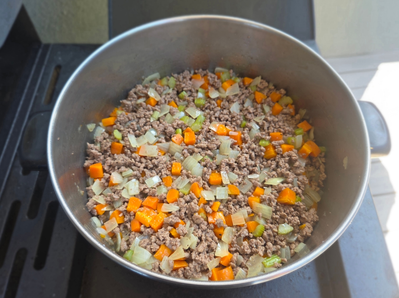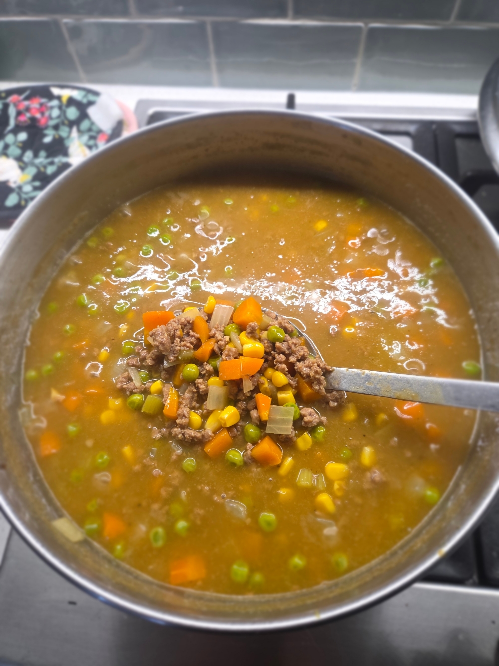 >>21917087This one became Savoury Mince.Brown beef mince.Sweat down mirepoix then add in to mince. (This is where the photo is taken).Combine well.Add butter, flour, and curry powder, and cook off. Add beef stock, worchestershire sauce and BBQ sauce.Combine, check for seasoning.Add peas and corn kernels.Simmer for 45 minutes.Serve with boiled potatoes and toast. It's a great comfort meal with very little effort required.But forget about what I'm cooking. I want to hear what everyone else would cook with the universal base of mince with diced onions, carrot and celery.