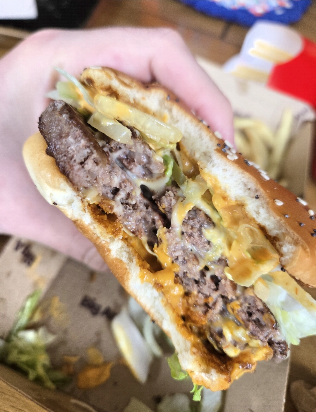 It very much feels like a DQP/Big Mac mash up with fried onion. That being said I thought it was pretty good, considering my main complaint about a big Mac is the small patties.