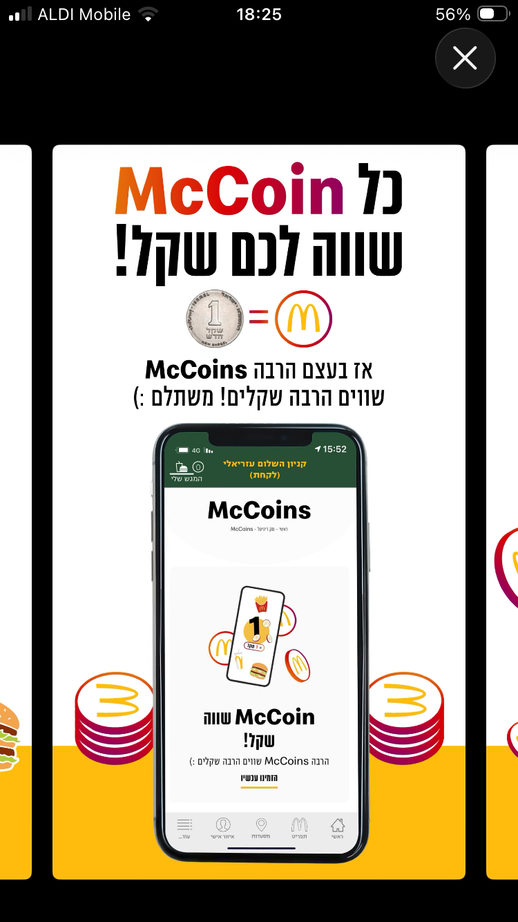 The Israeli McDonald’s app lets you add friends and send points (mccoins) which can be used to redeem food