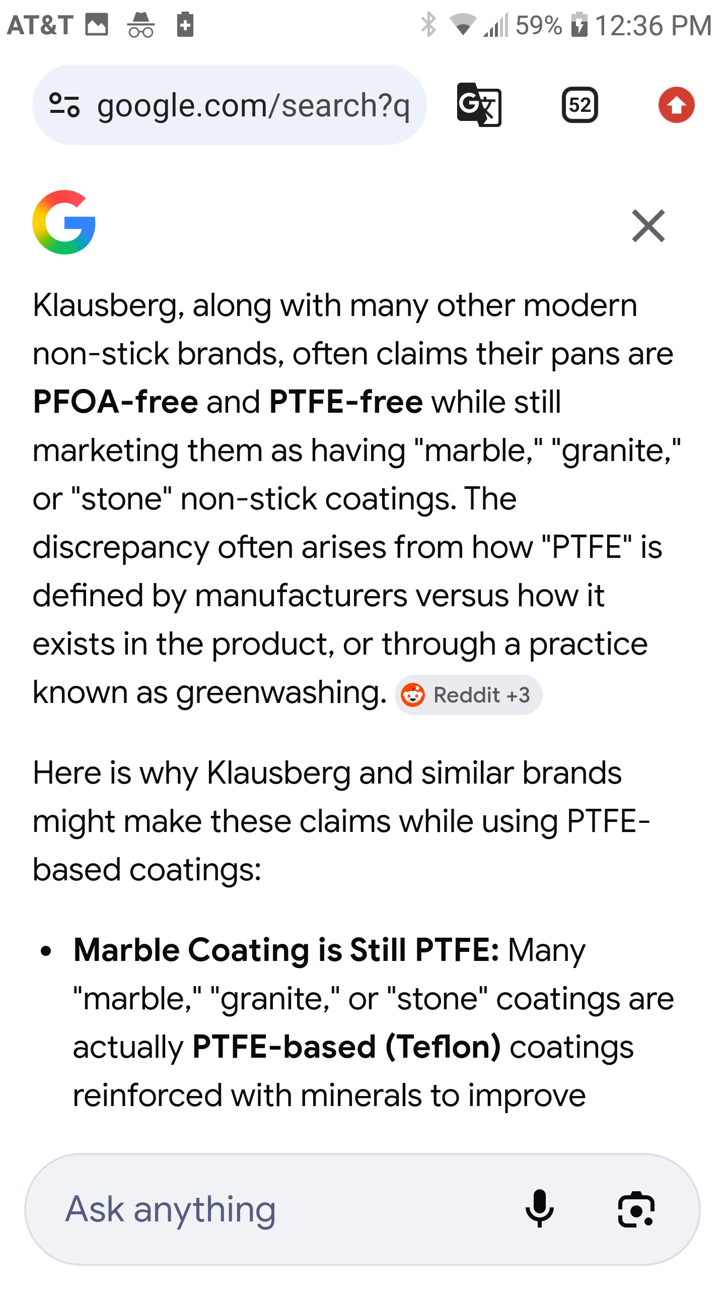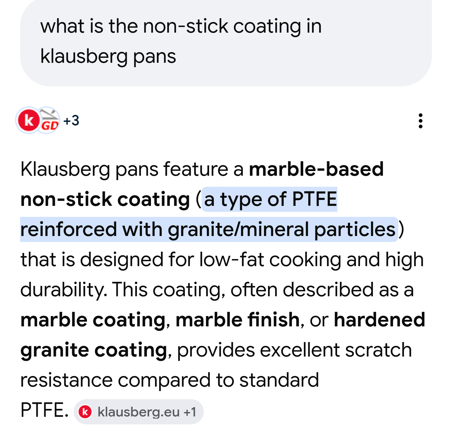 >>21937809>>21937798Oh wait, it's different pot.I guess the many other sellers of these pots are wrong. Multiple sale offers claim it's PTFE free but the klausberg never claimed so. That confused google AI too.