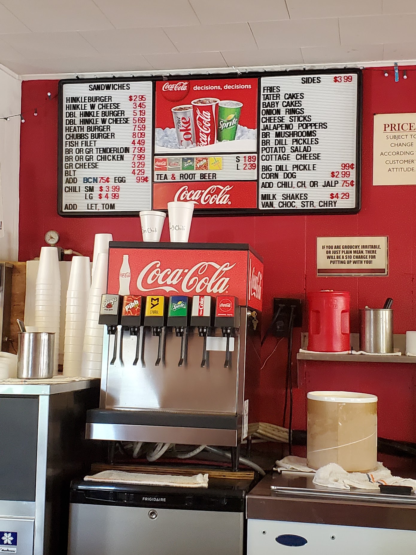 This place was in the town i grew up in the midwest. Mugs up. Tiny ass drive up place. They are only open during the warm season. basically just hamburgers, hot dogs, chili, fries, cheese, and soda..and any combo of each. The ladies who come up to your care, memorize your order. They put those trays on your door window. They also have home made root beer, which is the absolute best soda ive ever had in my life. If you come to missouri give it a try!