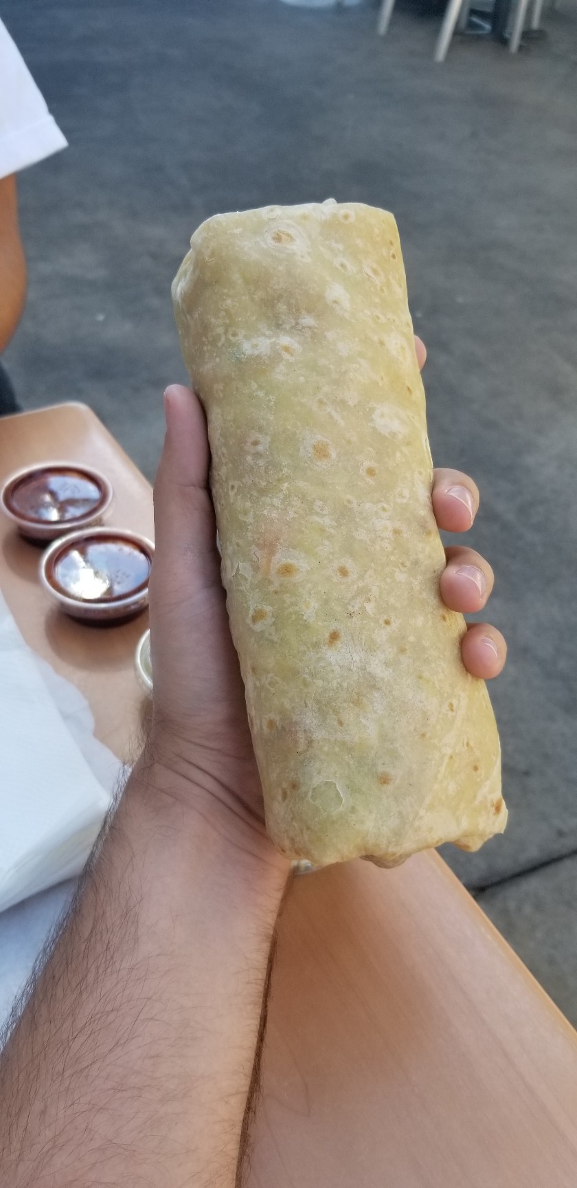 In santa Ana and Orange, you can get a fried fish, cabbage, and tangy pico salsa burrito this big. I buy one before big trips and I'm full until dinner with light snacks. Protip: instead of pouring salsa in the car, sip at the container like a fine wine.