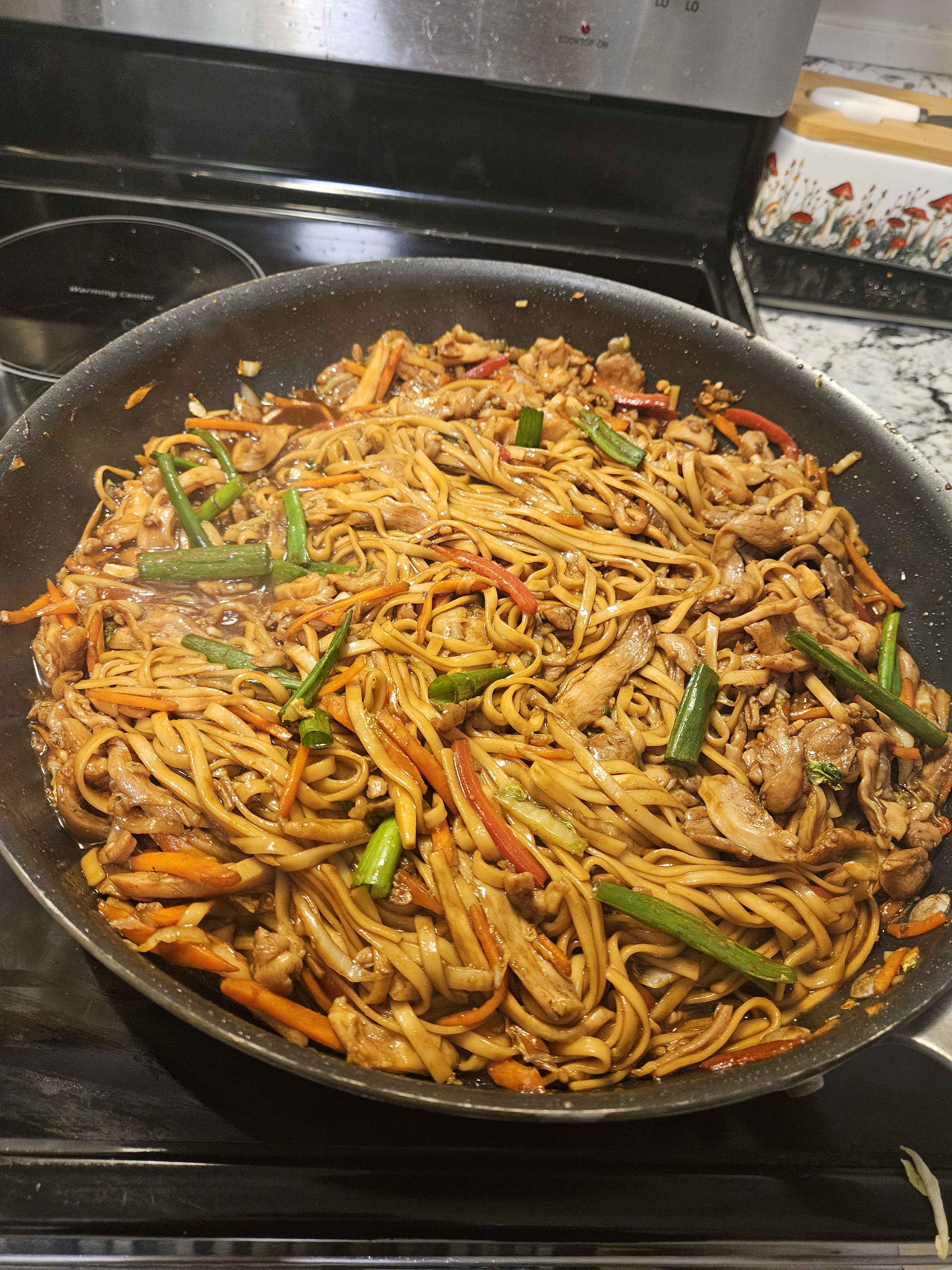 >>21945496ty, I used some crushed sichuan peppercorns in the velveting marinade for the chicken and it imparted that nice cooling numbing spice that I enjoy to the meat.>>21945512>>21947671My shitty camera work makes it look smaller than it is, that is a very large pan (14 inches high-rimmed) that is very full. I get that there are many fatasses on here but 2 meals for something like that would really be pushing it to the level of just trying to hurt yourself. From what we ate and stored afterwards, there was around 2 gallons of food in that pan. That's 10 or so pounds of food. I got 15 nice-sized bowls full of nothing but those noodles.>2-3 meals at mostIf you eat 5 pounds of food a meal then your scale of what is a "meal" is off, man. It doesn't have to make you feel disgustingly full and hate yourself to be a proper meal.