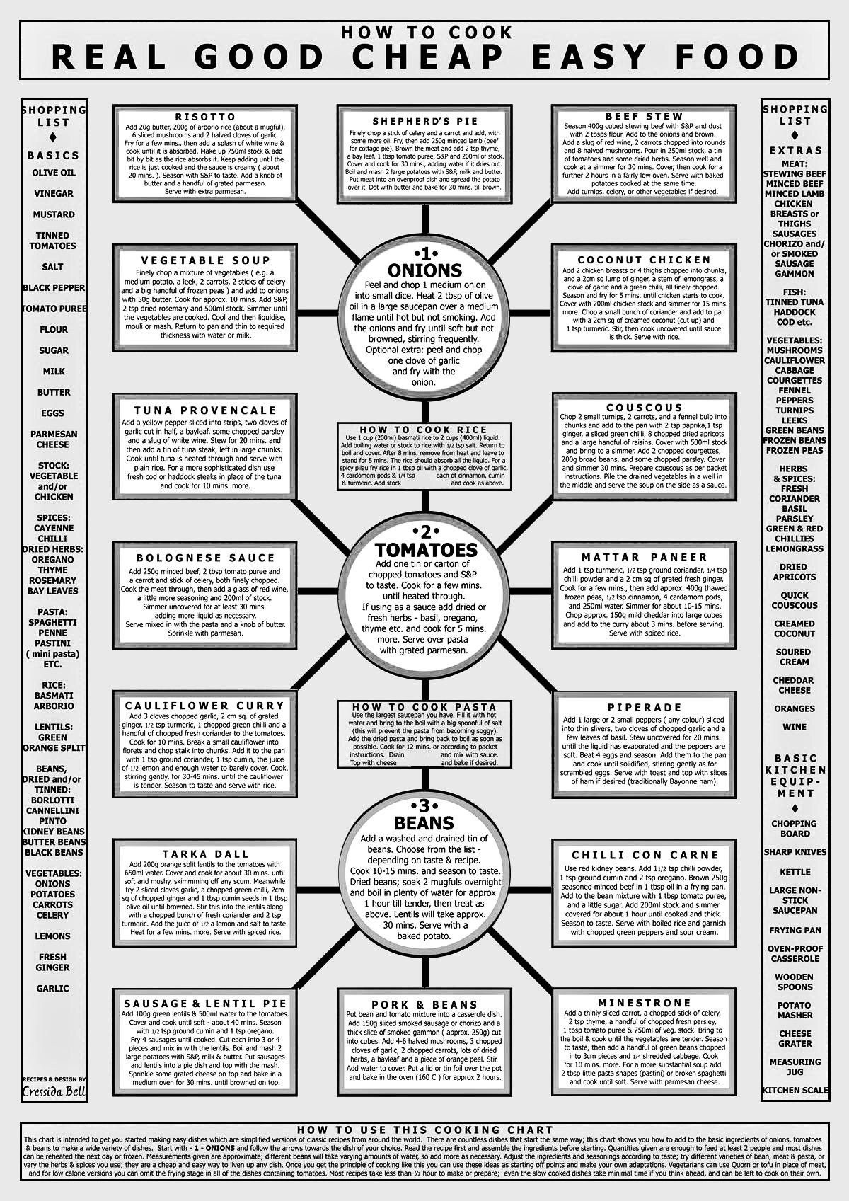 >>21944257cheap staple foods:>rice>chicken breasts>lean hamburger>beans>tomato sauce>diced tomatoes>onion>potatoes>oatmeal>milk>butter>garlic>cheese>breadyou can make 500 different dishes with these ingredients