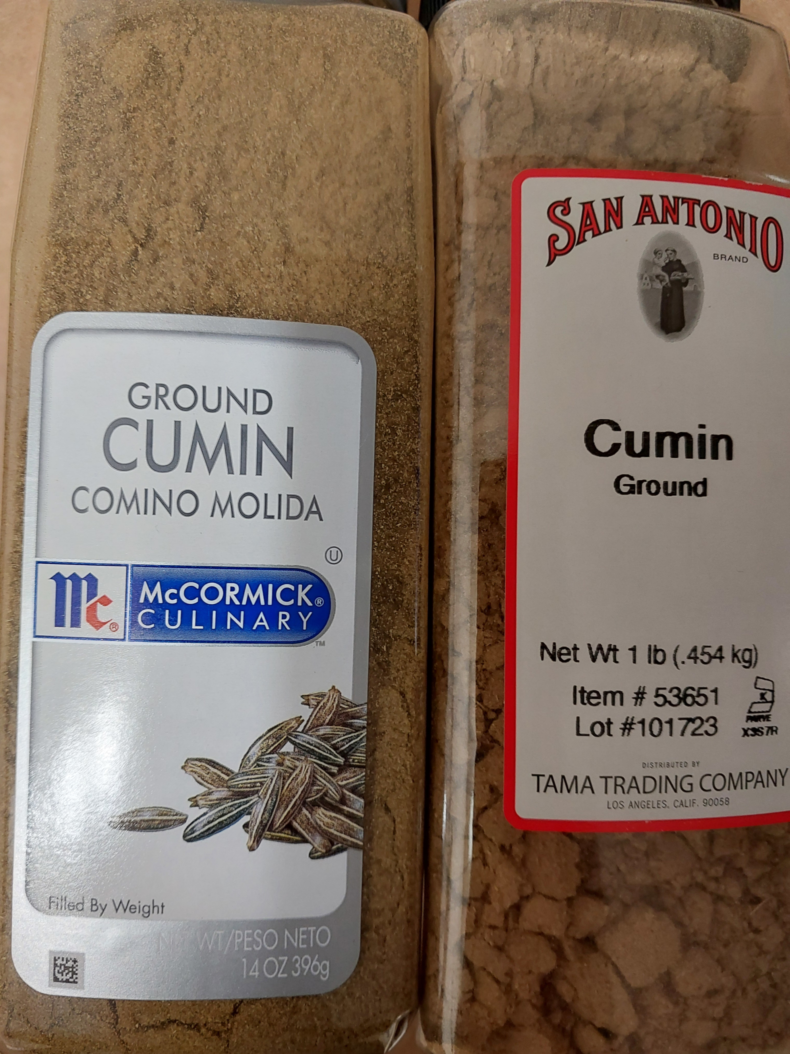 They're both opened (one of them minutes ago). Which one looks like quality cumin?