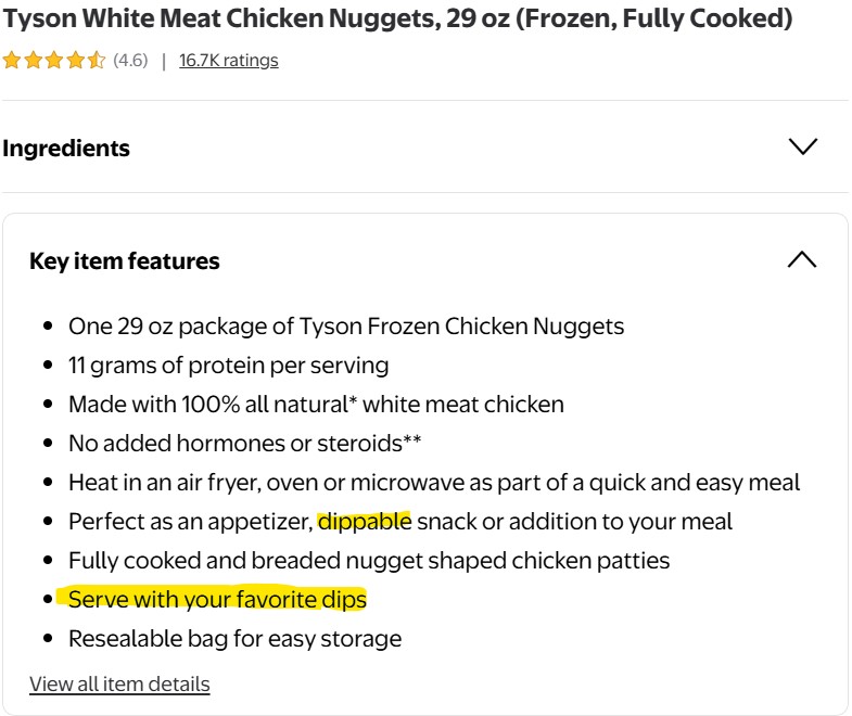 I dare you to find a single description for nuggets at a grocery store that doesn't mention dipping