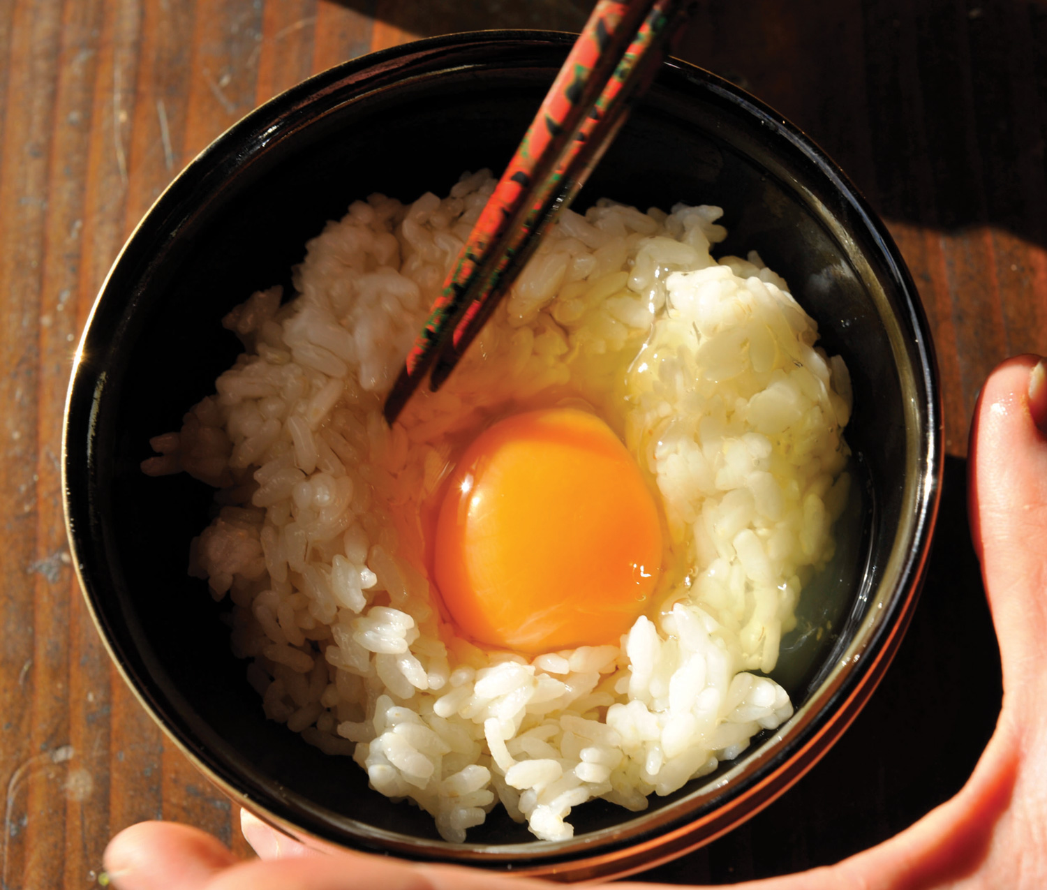 the heat of the egg doesnt actually cook the rice, or vice versa, not fully. it actually just is goopy raw egg rice. the reason its safe to eat is cause japan's eggs are treated safe enough to be eaten raw. thats not really a crazy thing, other first world countries have similar standards for their eggs where its safe enough to be consumed raw, its just that america isnt on that list. the way the us treats their eggs compromises the natural protective barrier eggs have so its easier for surface contaminates to penetrate the egg shell, aka salmonella. its more telling of the america's national food safety practices than japan's really.