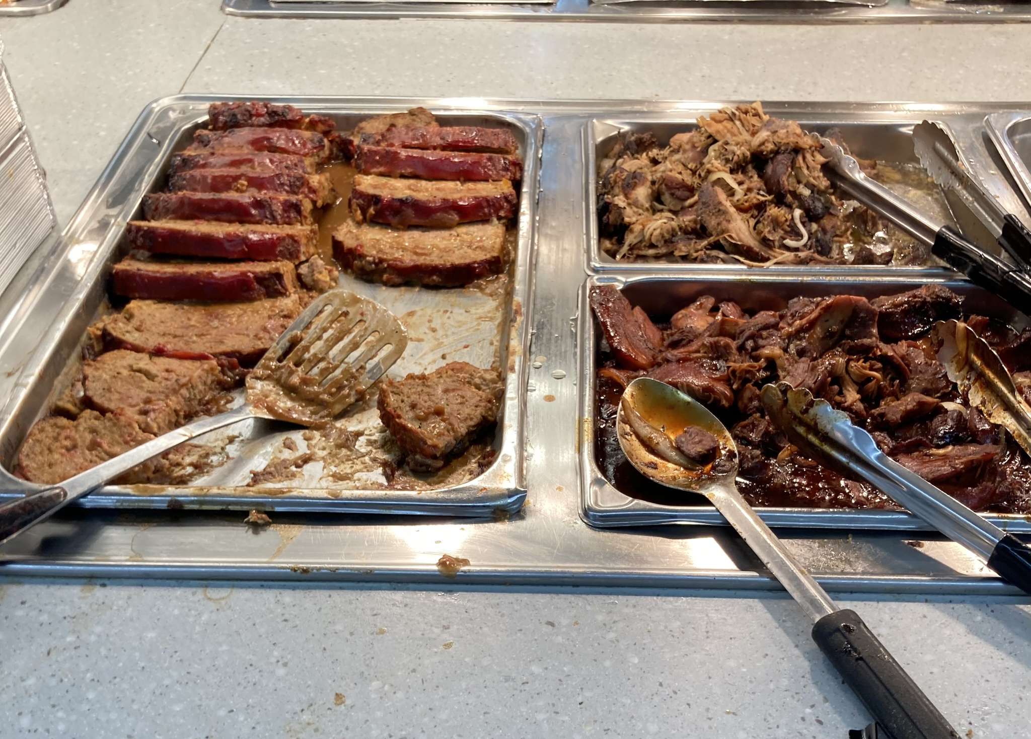 it's a meaty ol' time at the hot bar today! we got meatloaf, pork, chicken. mmmm
